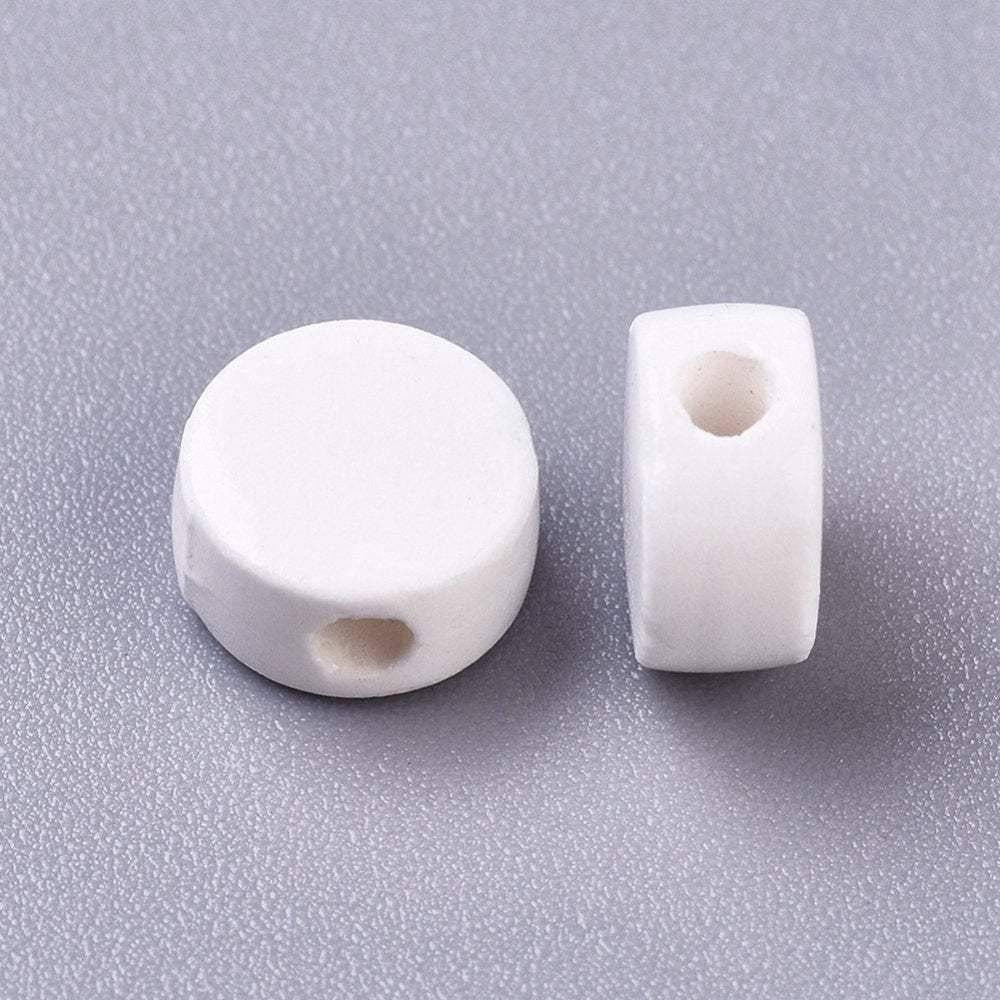 Cuentas de disco de cerámica blanca, 8 mm, x10 (G3497)