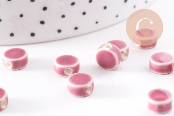 Cuentas de porcelana púrpura, cuentas de cerámica, cuentas de porcelana, cuentas de disco, cerámica púrpura, 8 mm, x10 G4728