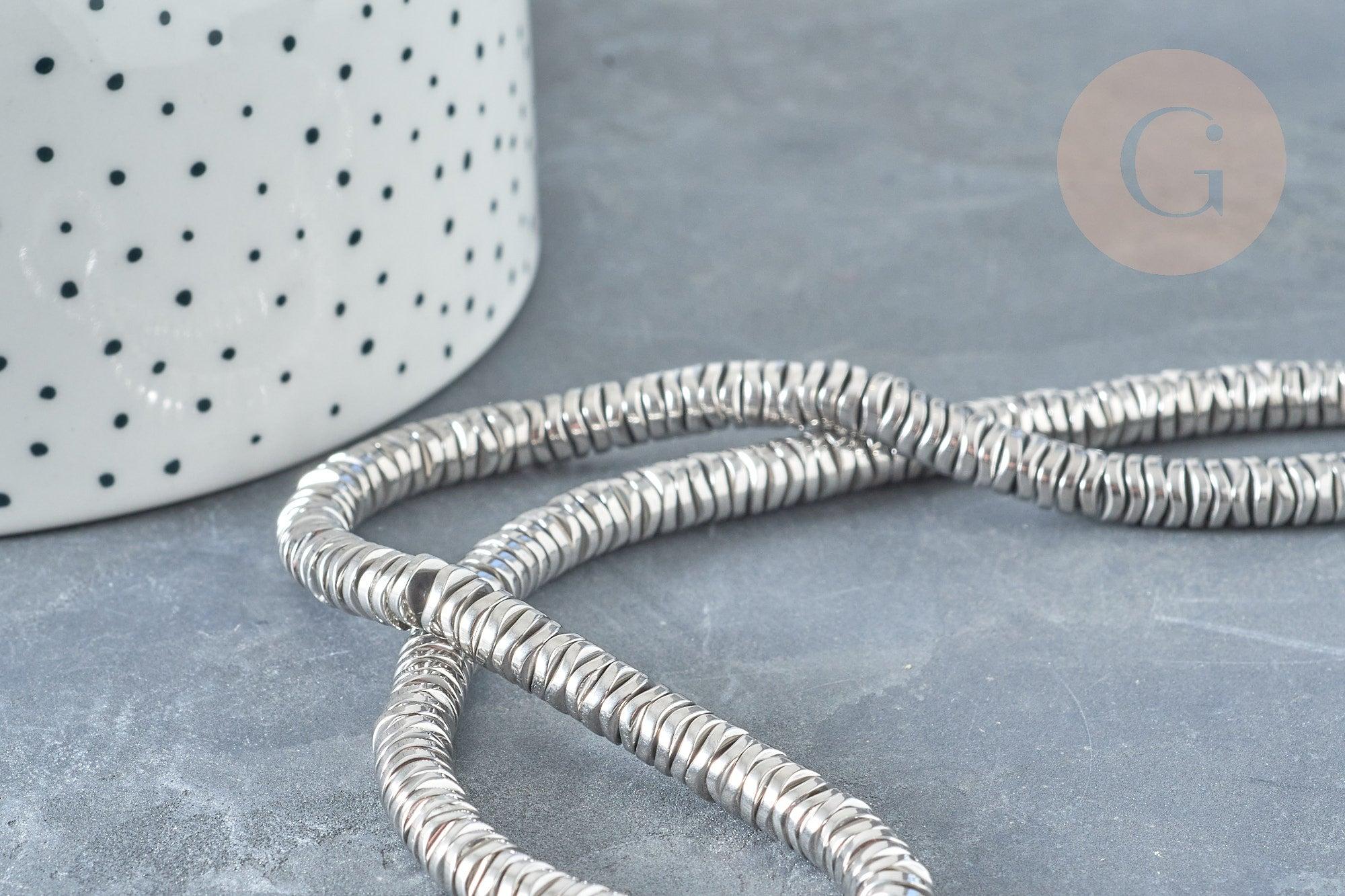 Bonitas cuentas onduladas sin facetar en hematita sintética plateada para usar en todas tus creaciones de fantasía DIY . Cuentas perfectas para sustituir las cuentas de metal.