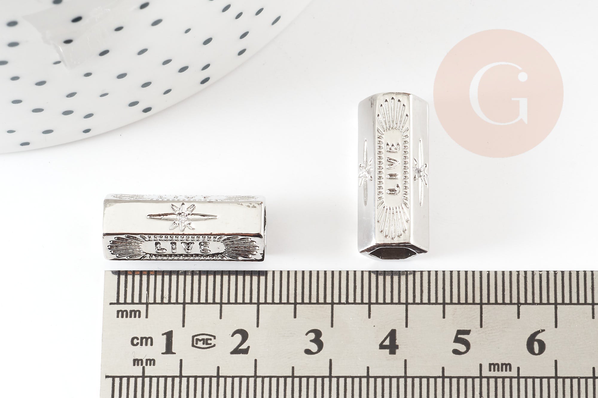 Cuenta de tubo talismán con mensaje EN VIVO de plata de 21 mm, joyería con cuentas de plata, suerte, x1 G9314