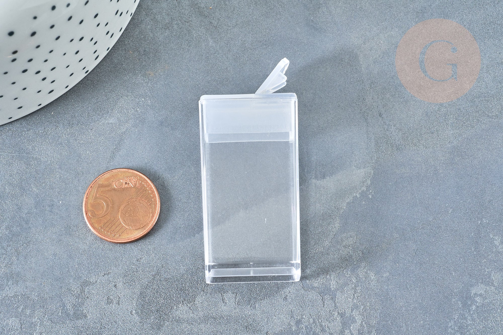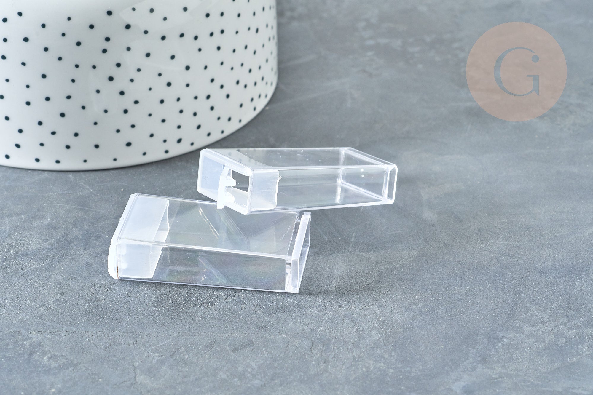 Esta pequeña caja de plástico es ideal para guardar tus perlas y piedras para no perderlas después de tus creaciones de bisutería DIY. Tiene forma rectangular y se encuentra erguido.