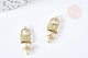 Breloque cadenas laiton doré 18k zircons 12.5mm, x1 (G2578)