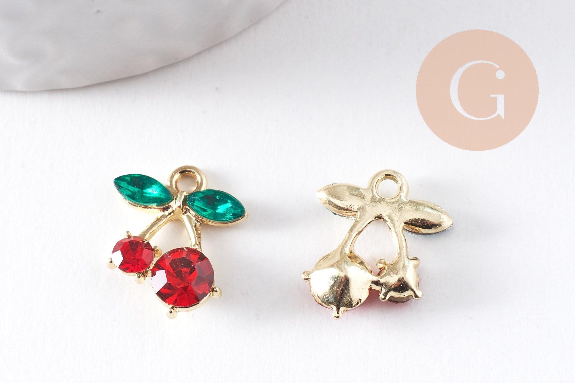 Breloque cerise zircons et zamac doré 16K, x2 (G10391)