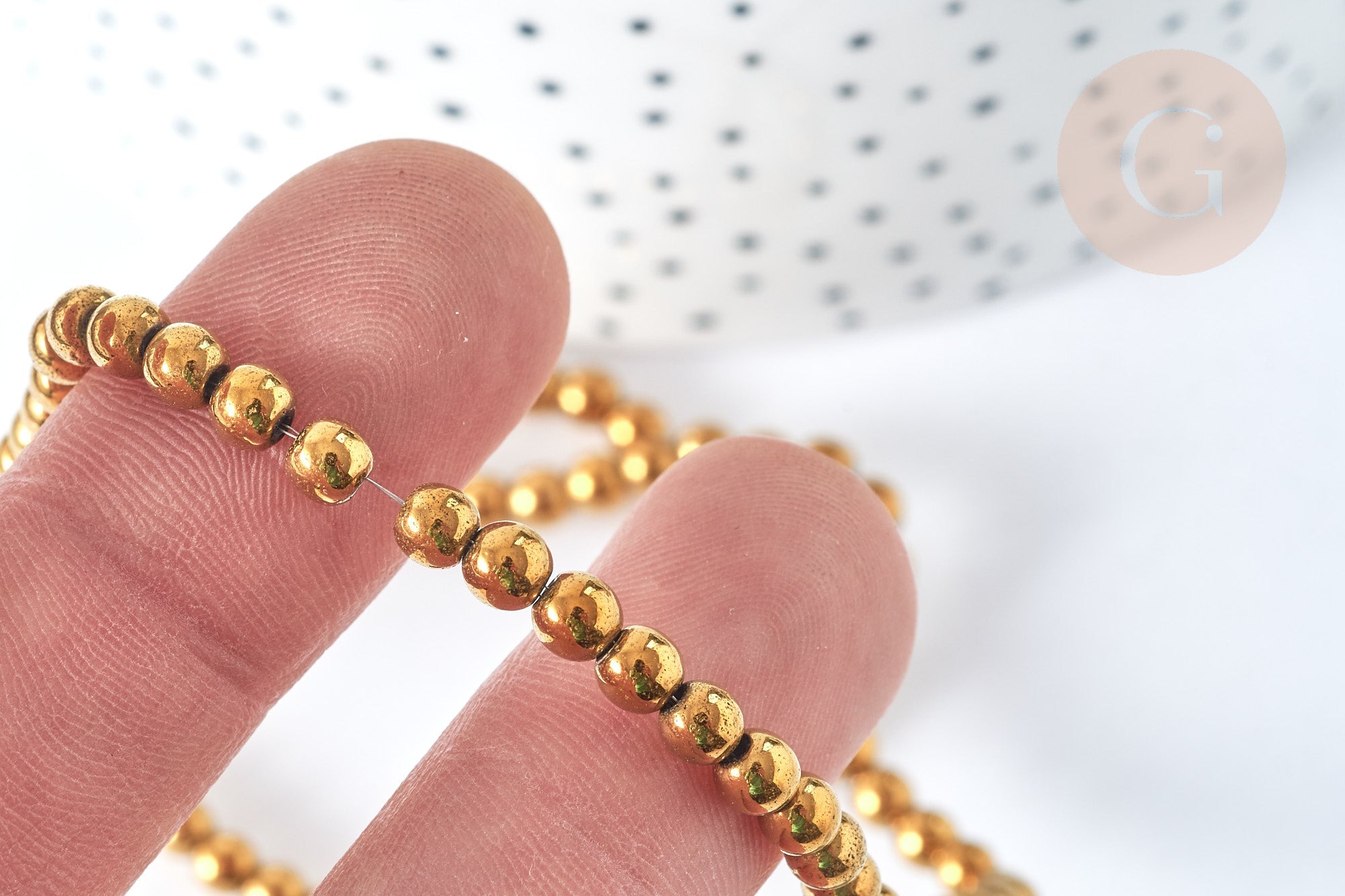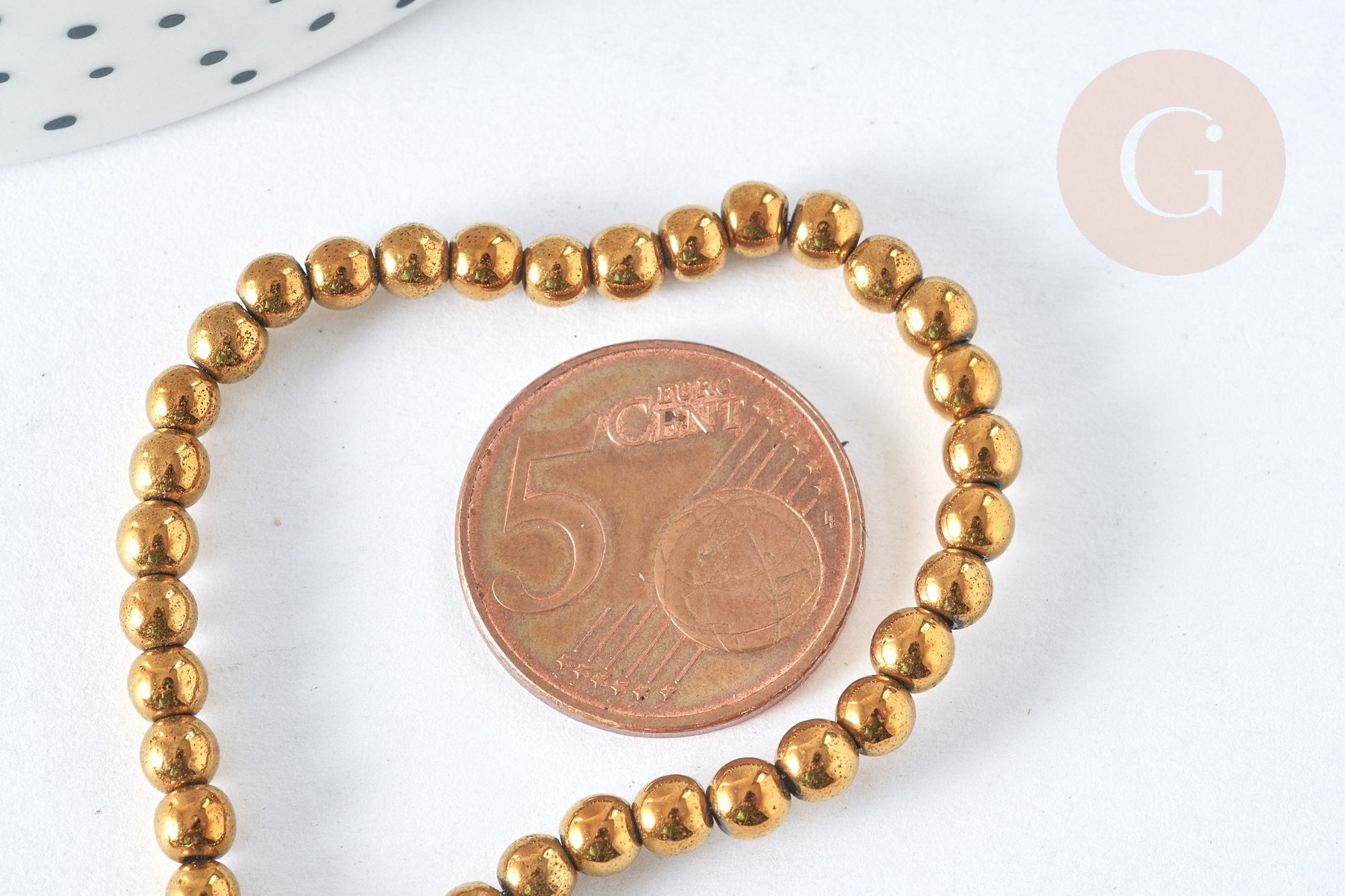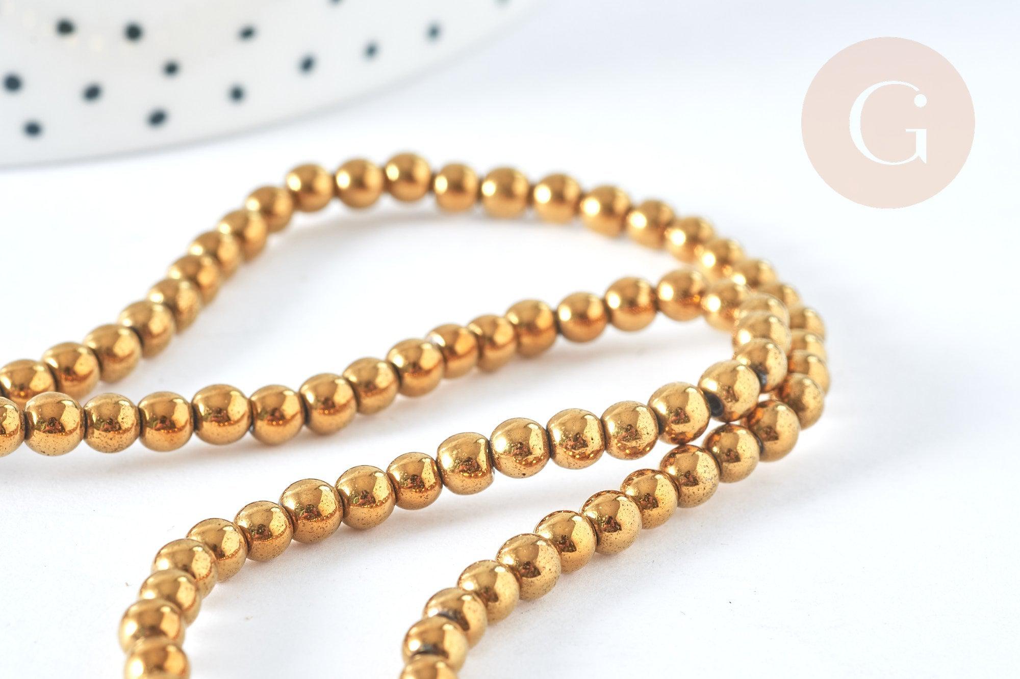 Dale un toque elegante, luminoso y versátil a tus creaciones con esta tira de cuentas redondas de hematita sintética dorada de 4 mm . Ligeras y elegantes, estas cuentas de hematita sintética ofrecen un hermoso brillo dorado sin añadir volumen a tus joyas. Son perfectas para crear bisutería DIY para el día a día, así como para proyectos creativos más originales, como adornos de tela.