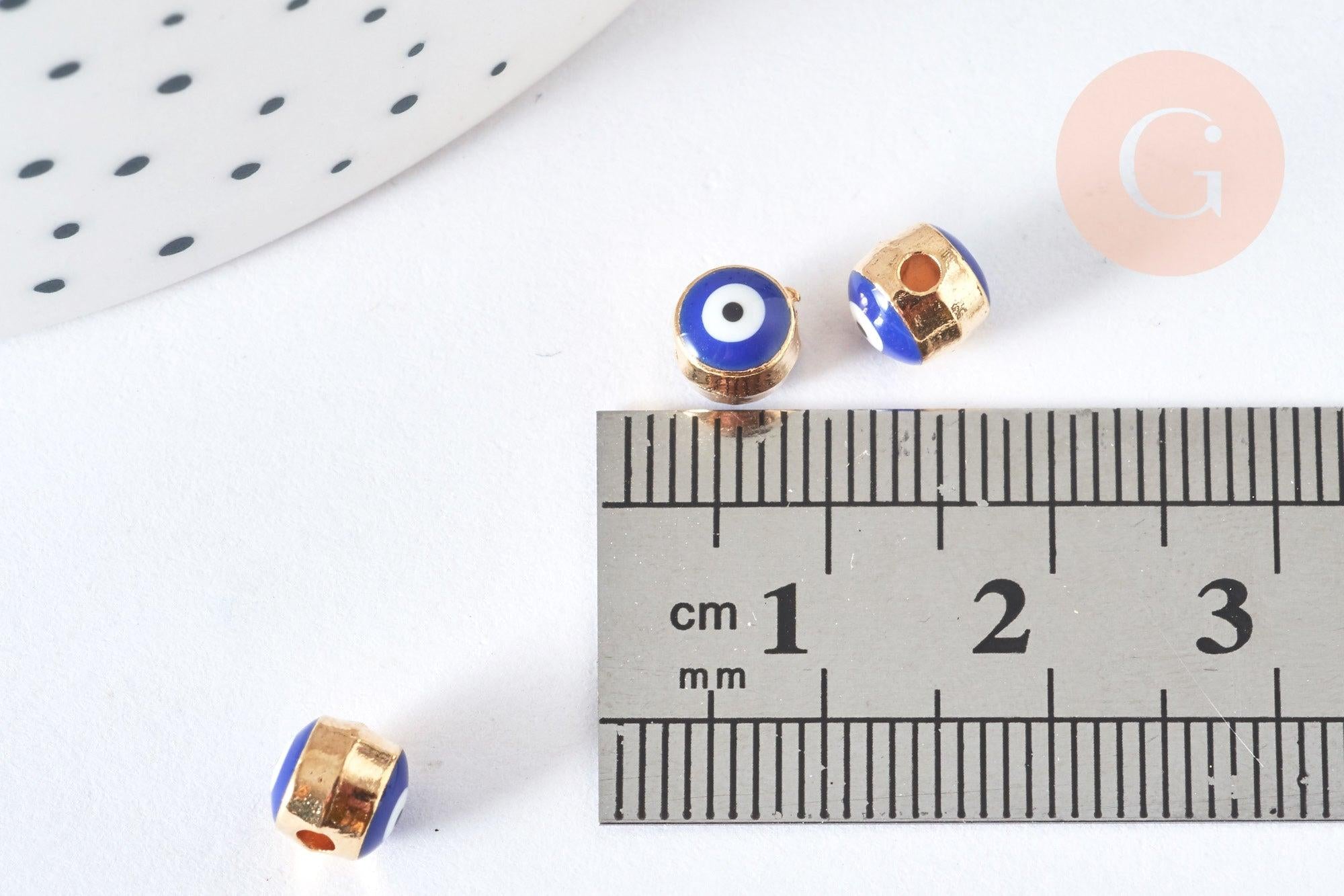 Cuenta dorada de mal de ojo esmalte azul oscuro latón dorado 5,5 mm, suerte, joyería de mal de ojo, x10 G7118