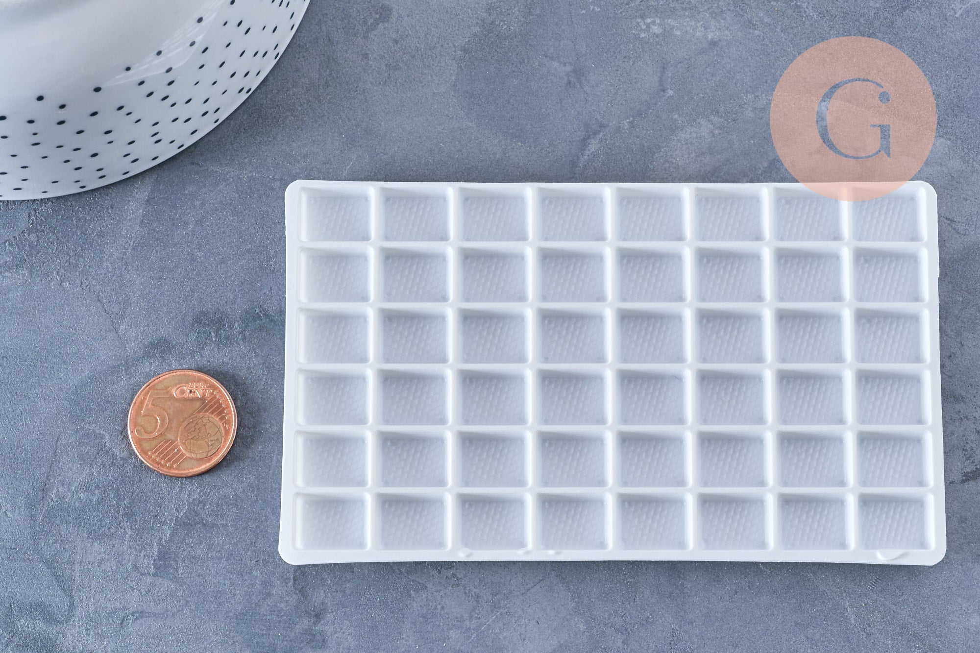 Una bandeja de plástico rectangular blanca con 48 compartimentos para guardar tus piedras y cuentas durante tus creaciones de joyería DIY. Práctico para guardar cuentas, piedras y fornituras cuando hagas tu bisutería DIY. Muy práctica para creaciones DIY, ¡esta bandeja...