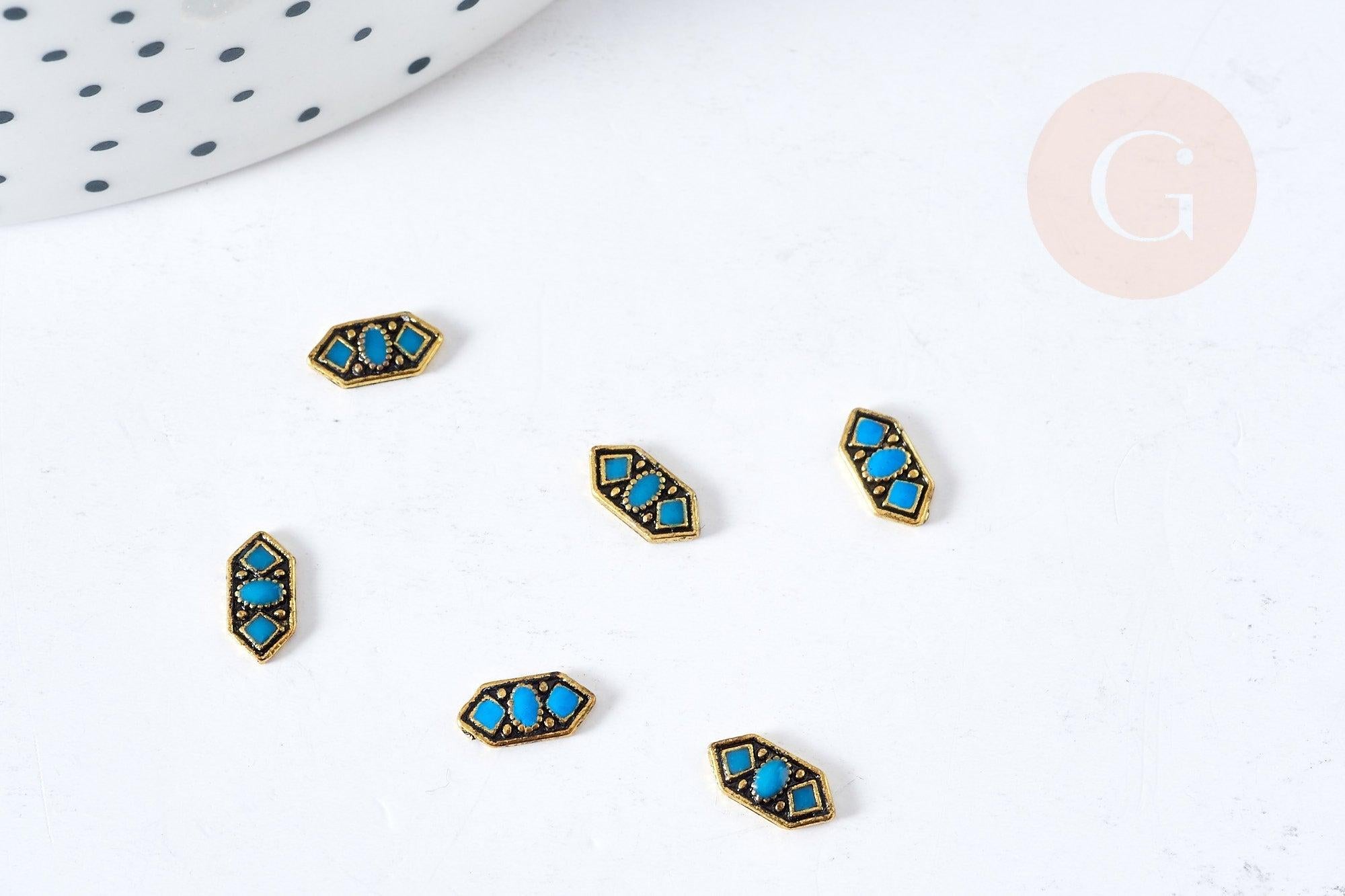 Con este elemento adhesivo de aleación de color bronce esmaltado en azul , puedes personalizar tu bisutería DIY para que refleje tu propio estilo y creatividad. Es una opción ideal para entusiastas de la joyería DIY y profesionales de la joyería que buscan nuevos elementos para sus creaciones.