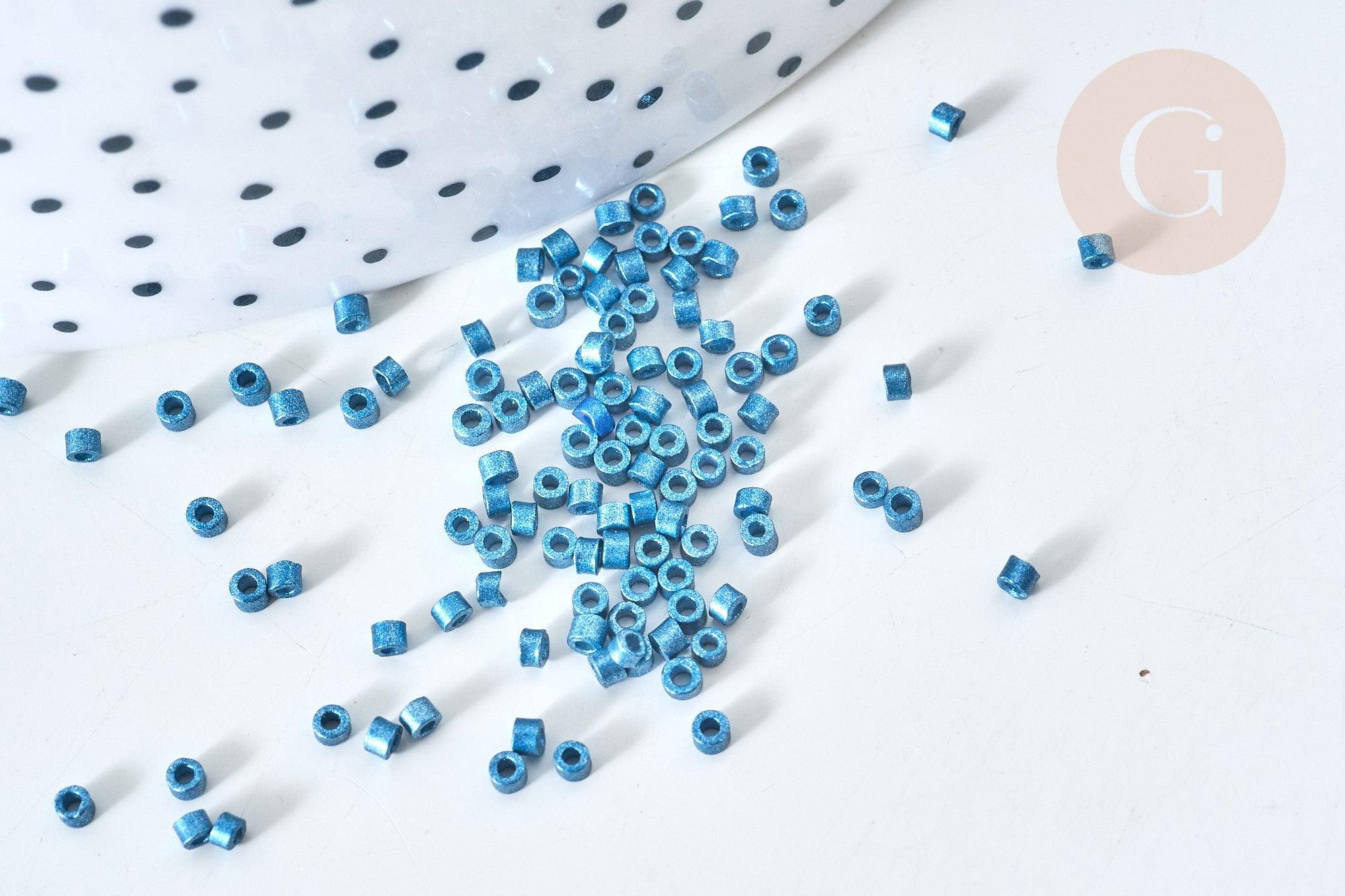 Cuentas tubulares de vidrio mate metalizado azul oscuro estilo Delica Miyuki, 1 bolsa de 8 g (G7776)