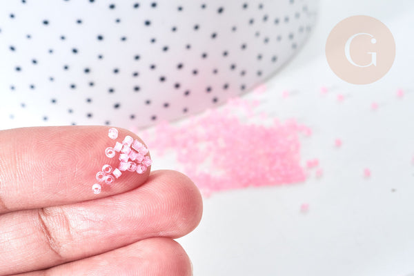 Las cuentas de cristal rosa transparente Délica Miyuki se caracterizan por ser muy regulares. Esta regularidad te permitirá utilizarlos cuando trabajes en telares o utilices técnicas de tejido.