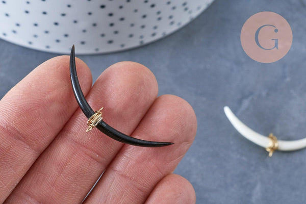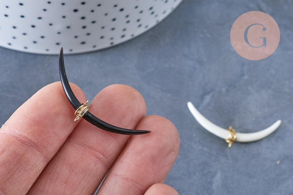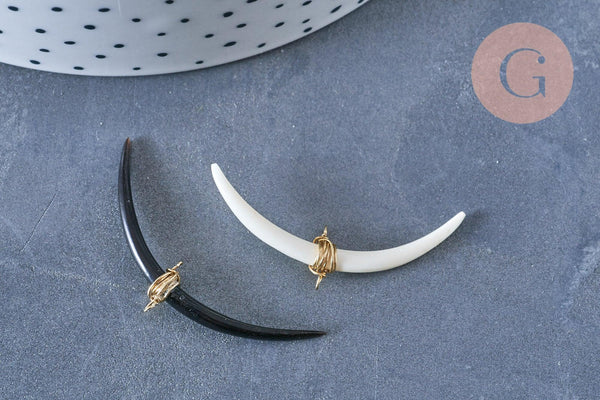 ¡Déjate encantar por el encanto de este croissant de cuerno natural ! Su color neutro y su elegante diseño te inspirarán a crear tu bisutería DIY .