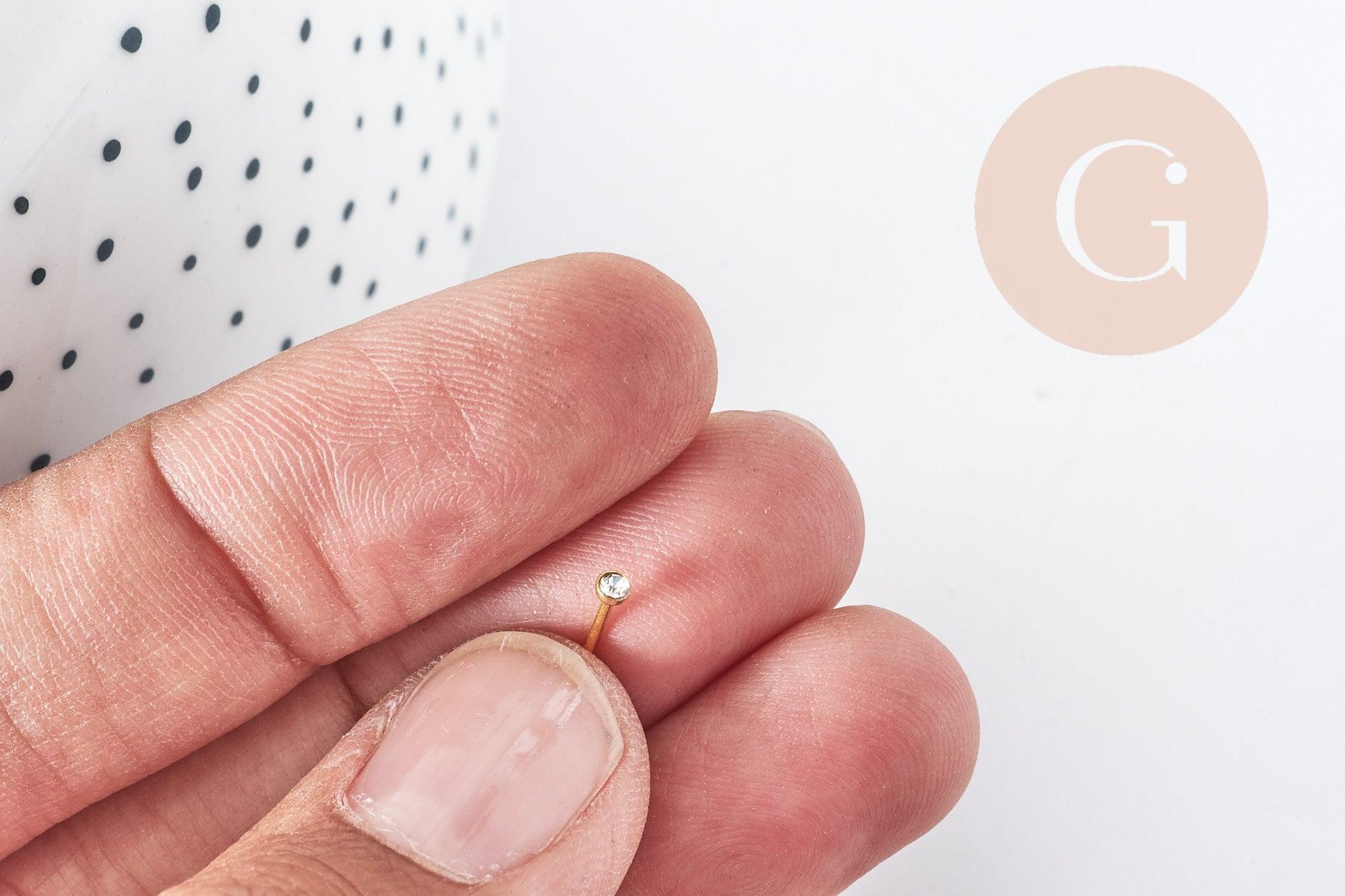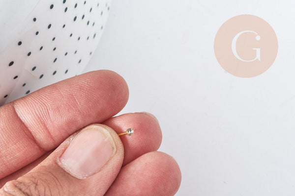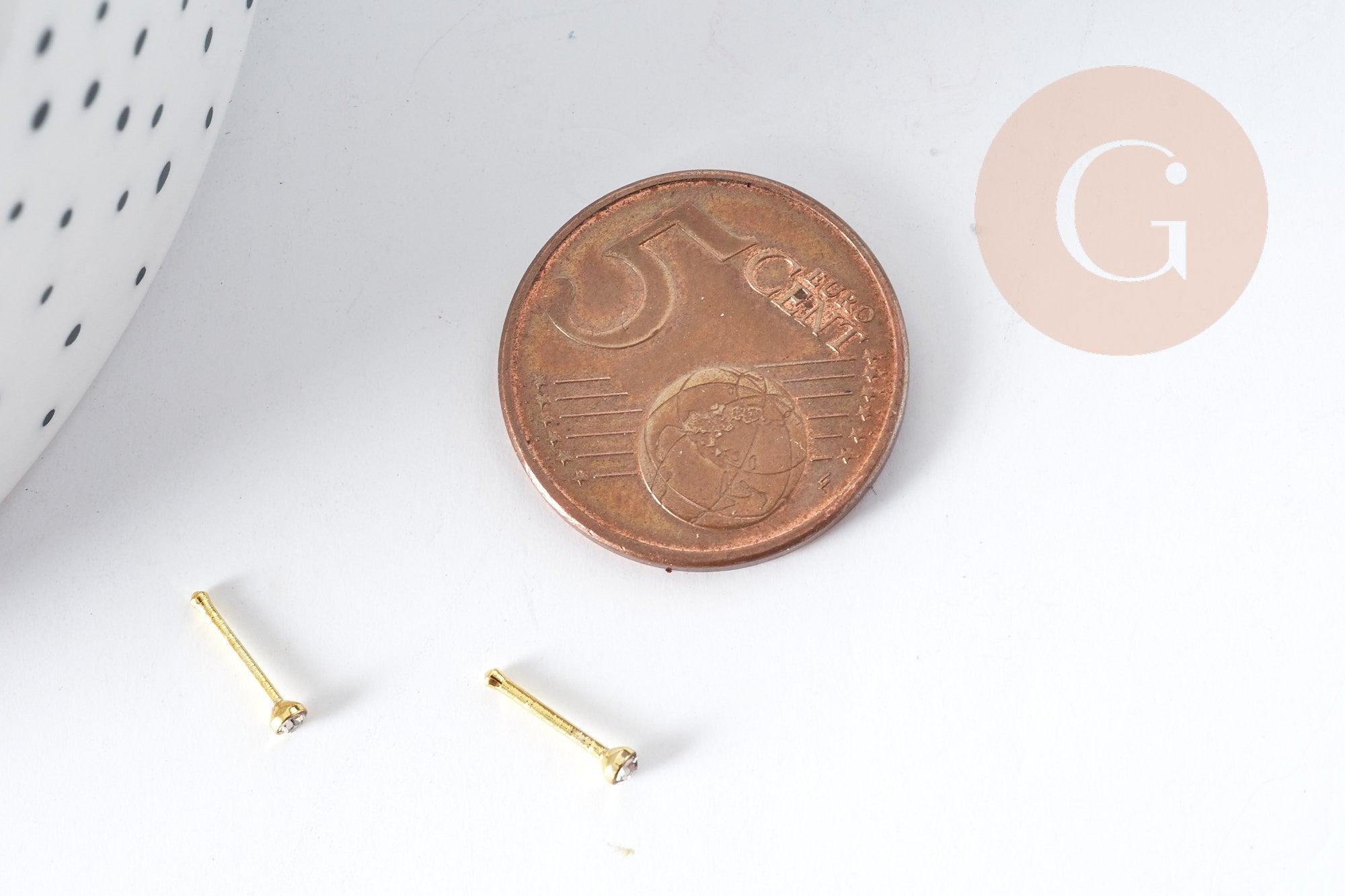 Piercing de nariz acero quirúrgico 316L strass blanco 2 mm, piercing de acero x1 G9005