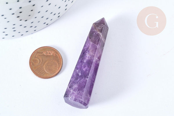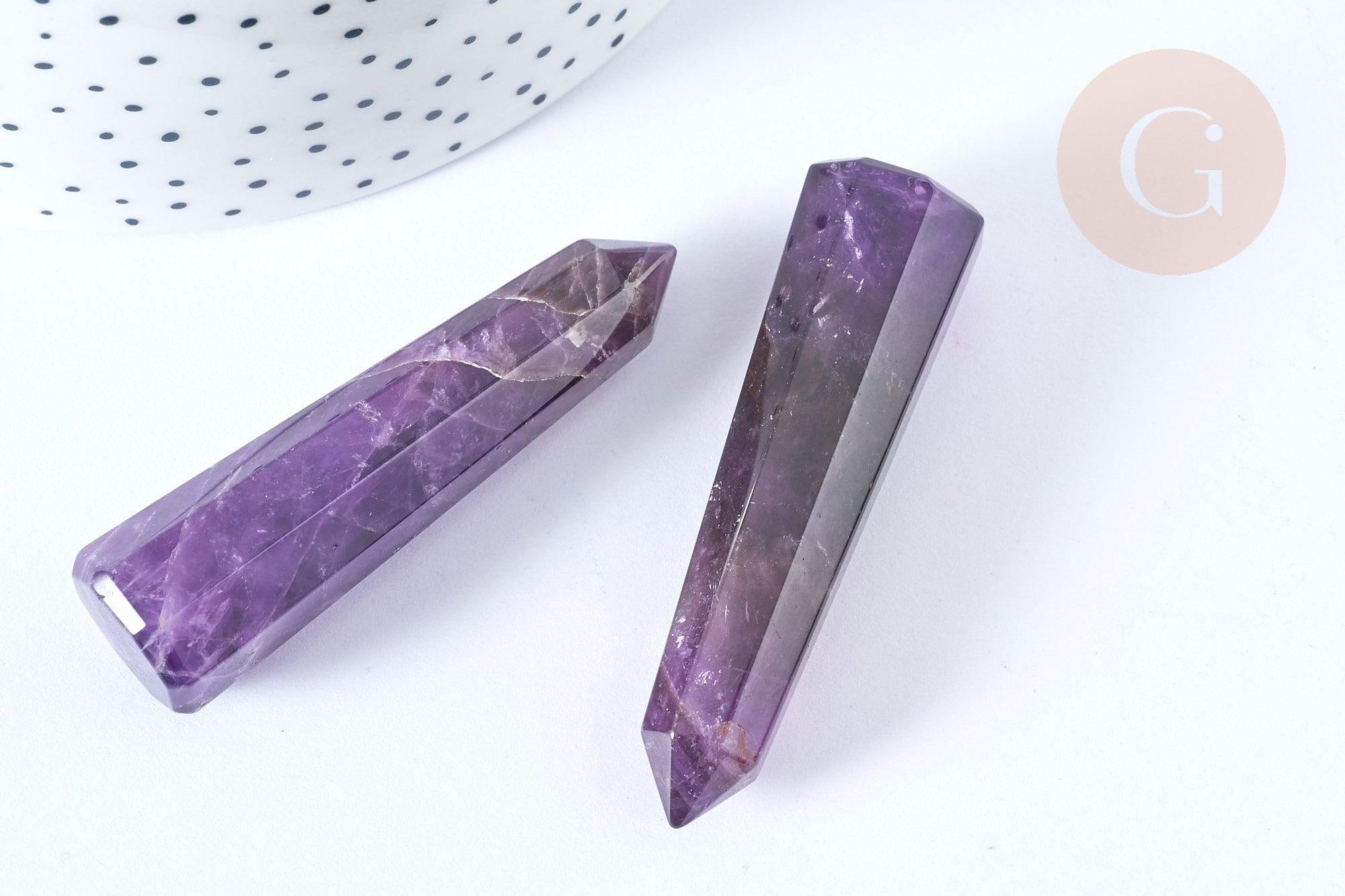 Gran punta de amatista natural sin perforar 59-61 mm, litoterapia con piedra natural pulida, x1 G7840