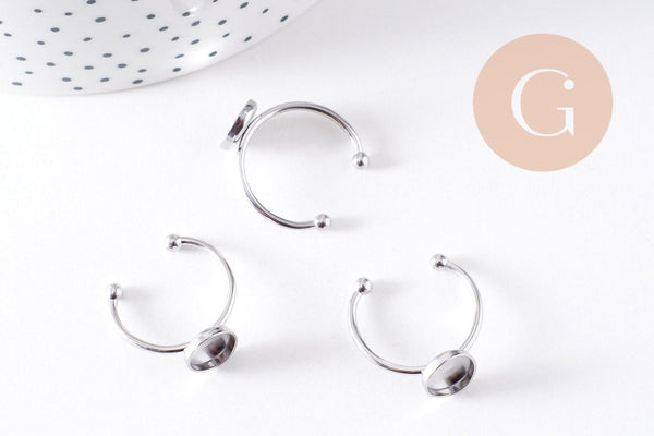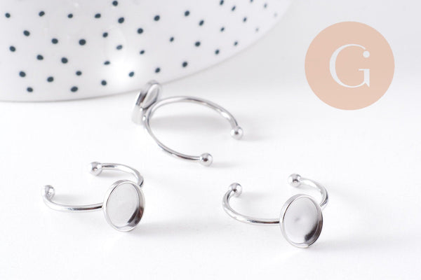 Anillo ajustable para cabujón ovalado de 9x10 mm en acero inoxidable 304 platino, x2 (G10297)