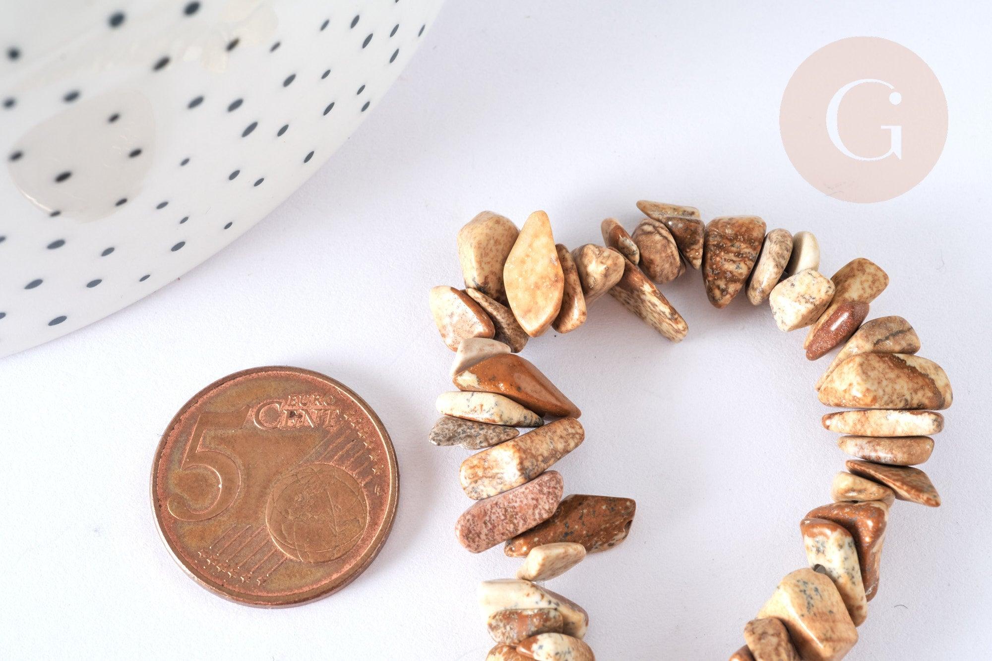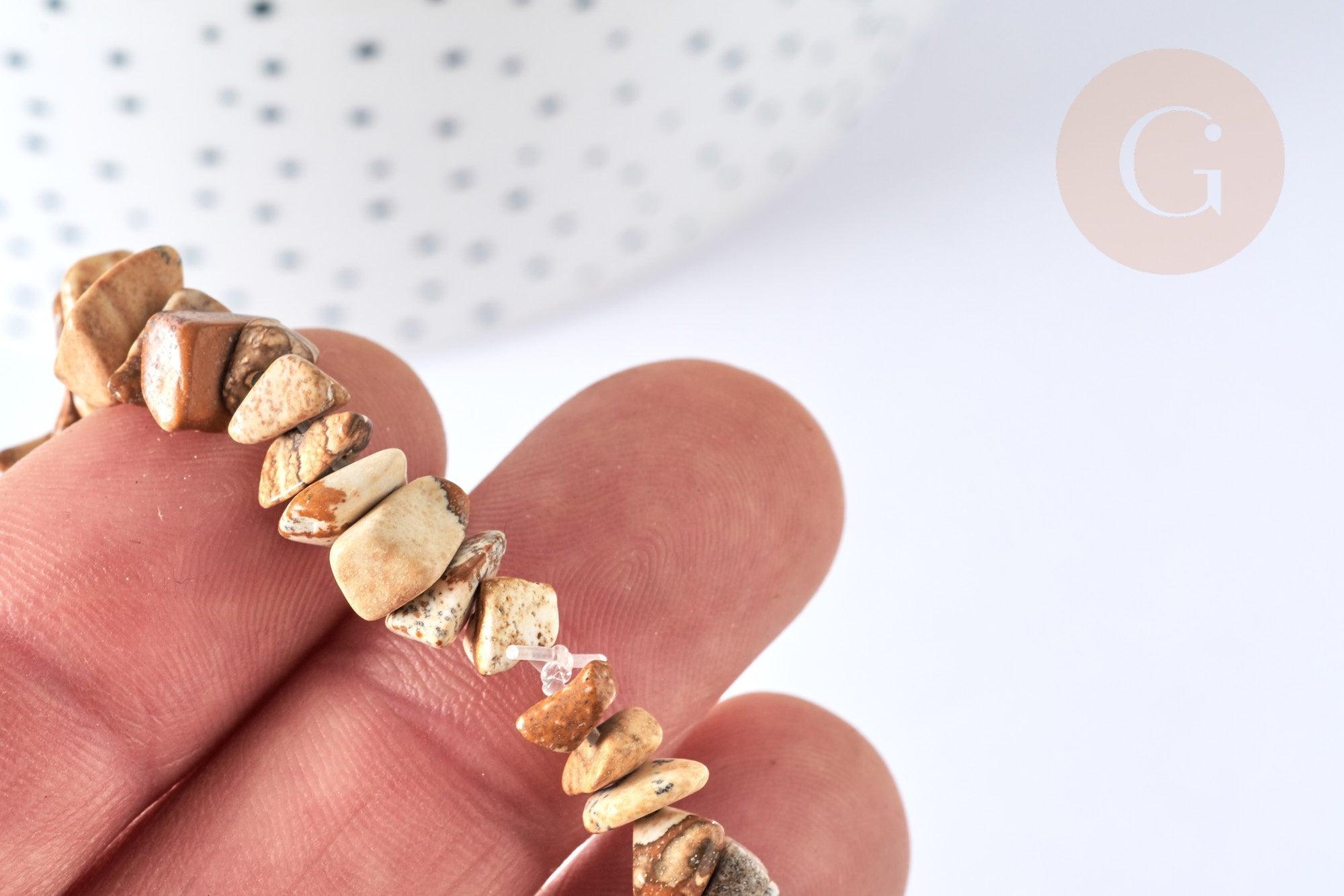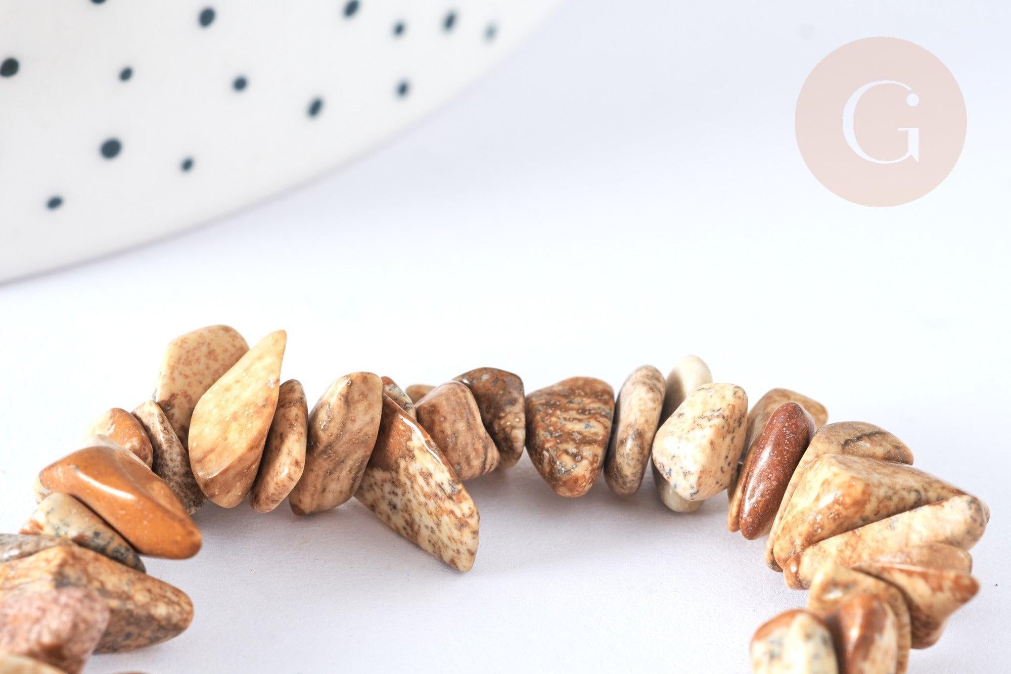 Adopte esta pulsera elástica de jaspe de paisaje natural para protegerse de las emociones y ondas negativas .