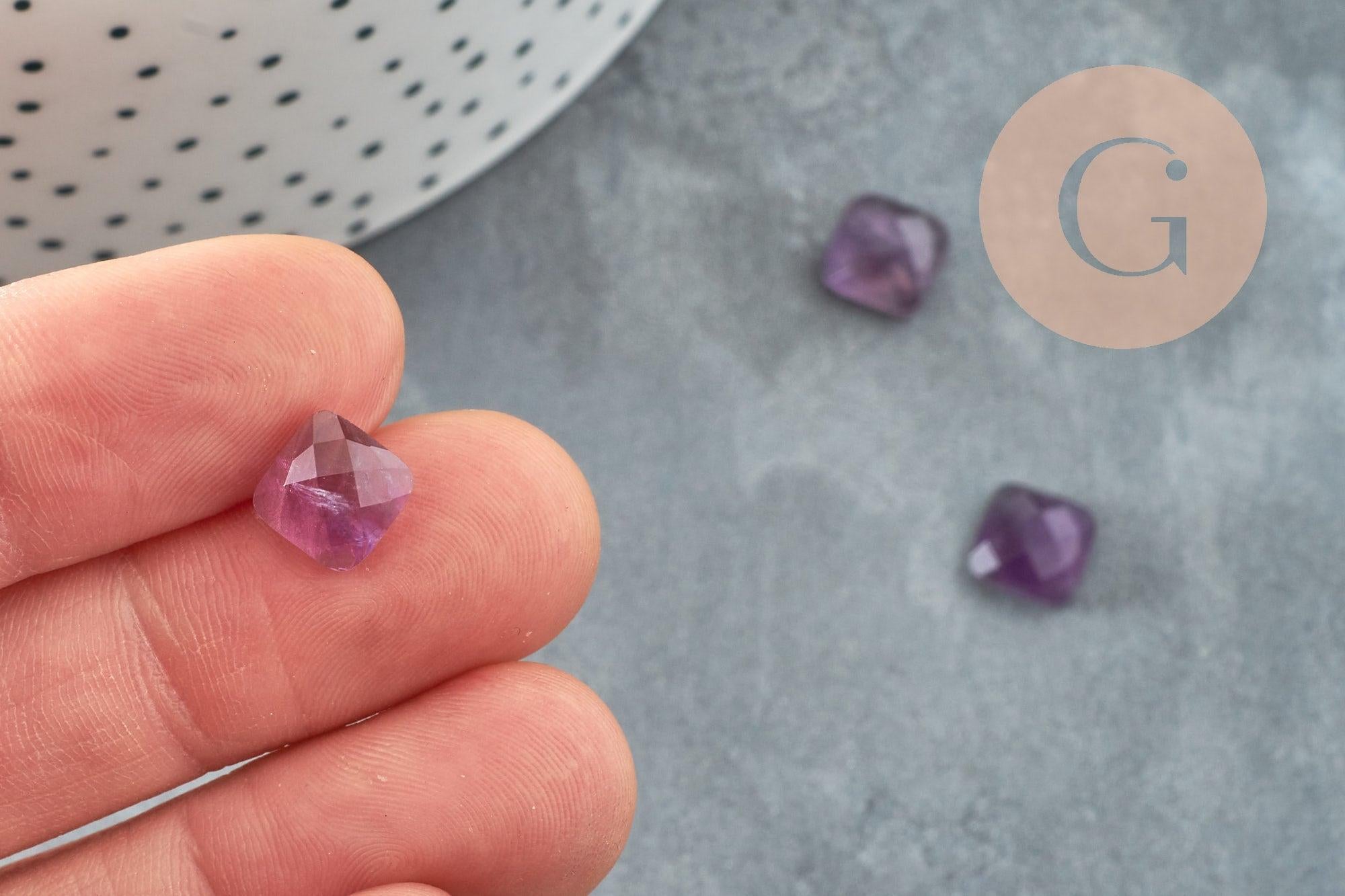 Este cabujón cuadrado de amatista natural facetado de 8x8 mm es una piedra preciosa que se puede utilizar para crear joyas refinadas.
