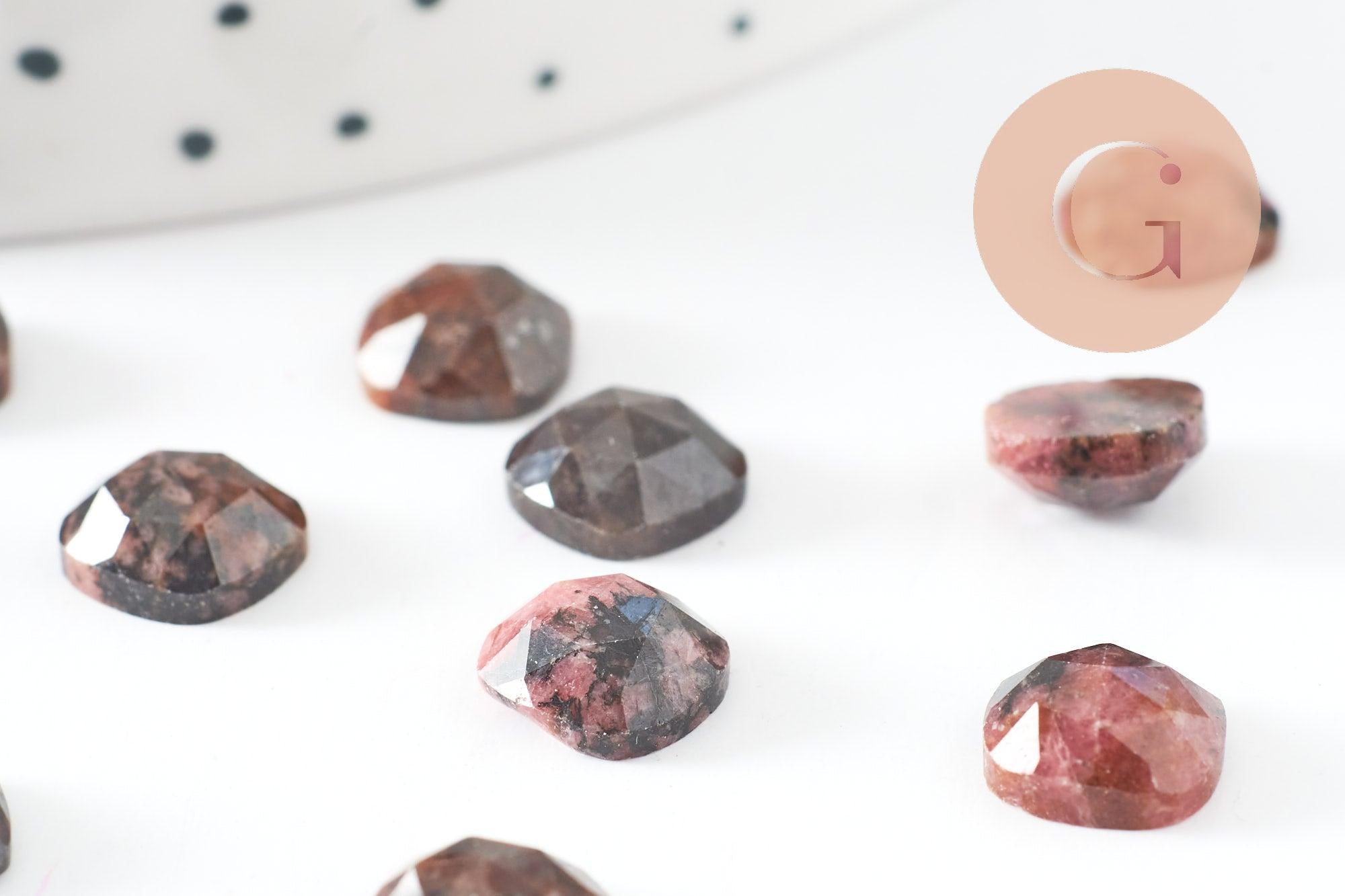 Adopte este cabujón cuadrado de rodonita natural facetada para crear joyas delicadas