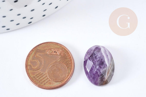 Cabujón ovalado facetado de amatista natural de 18 x 13 mm, x1 (G8665)