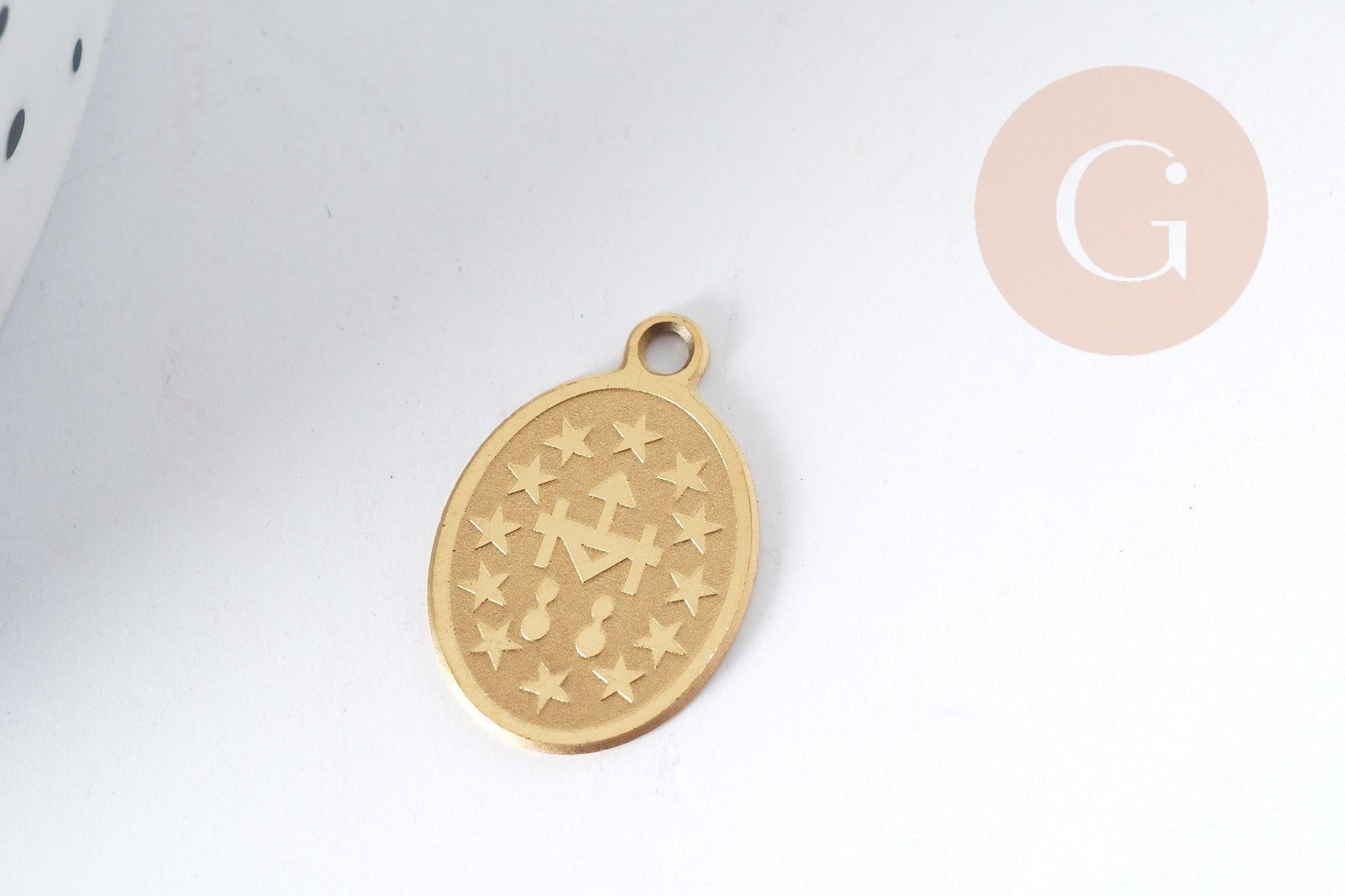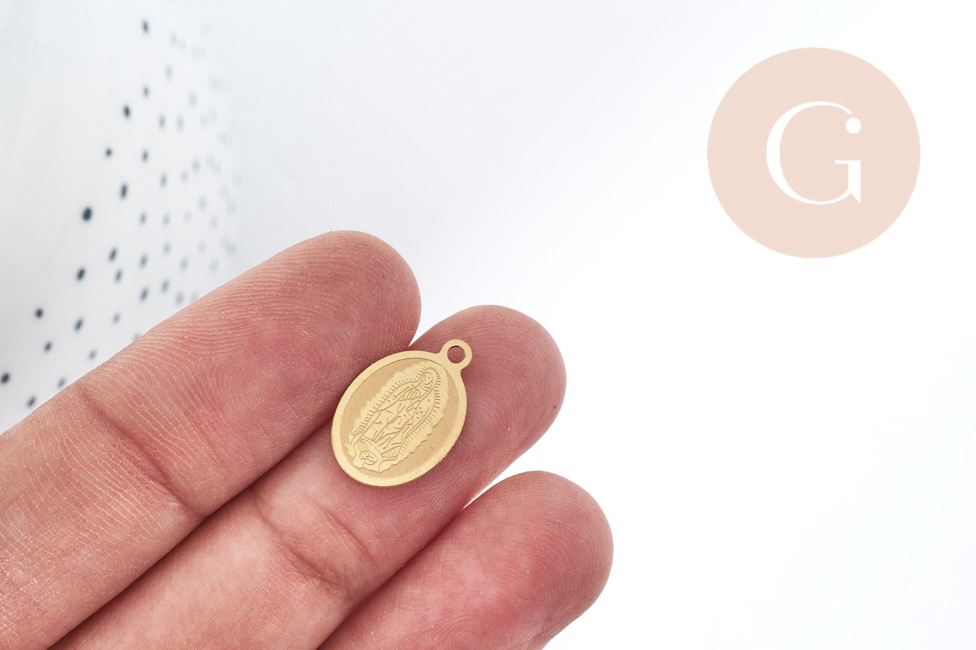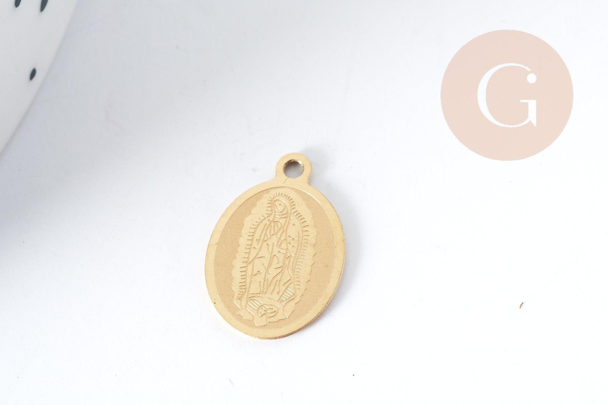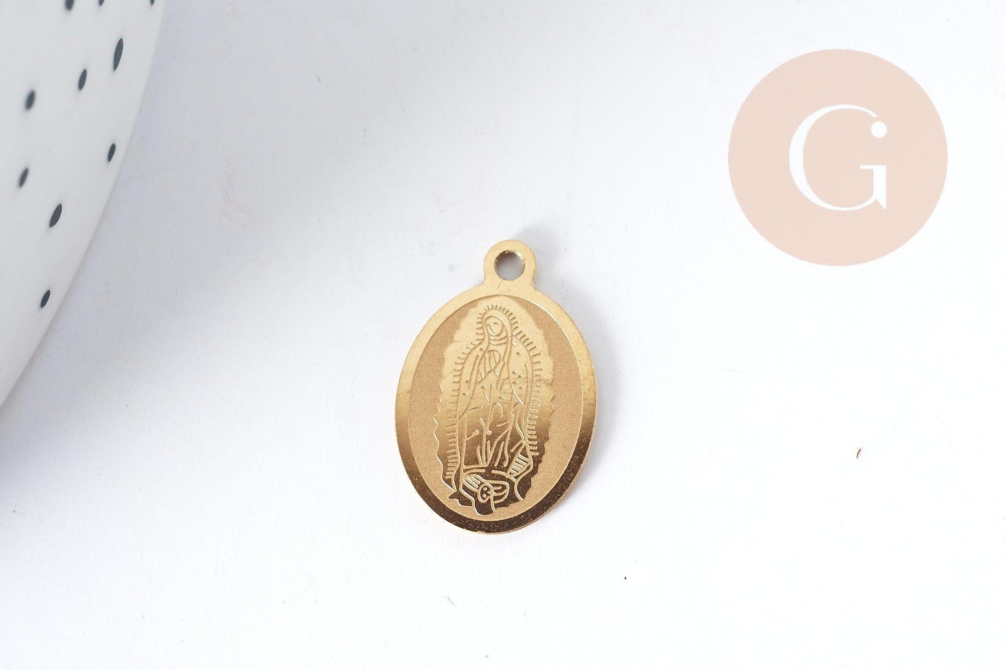 Realiza un montón de bisutería DIY con este charm dorado de acero inoxidable 304 , que representa a la Virgen María .