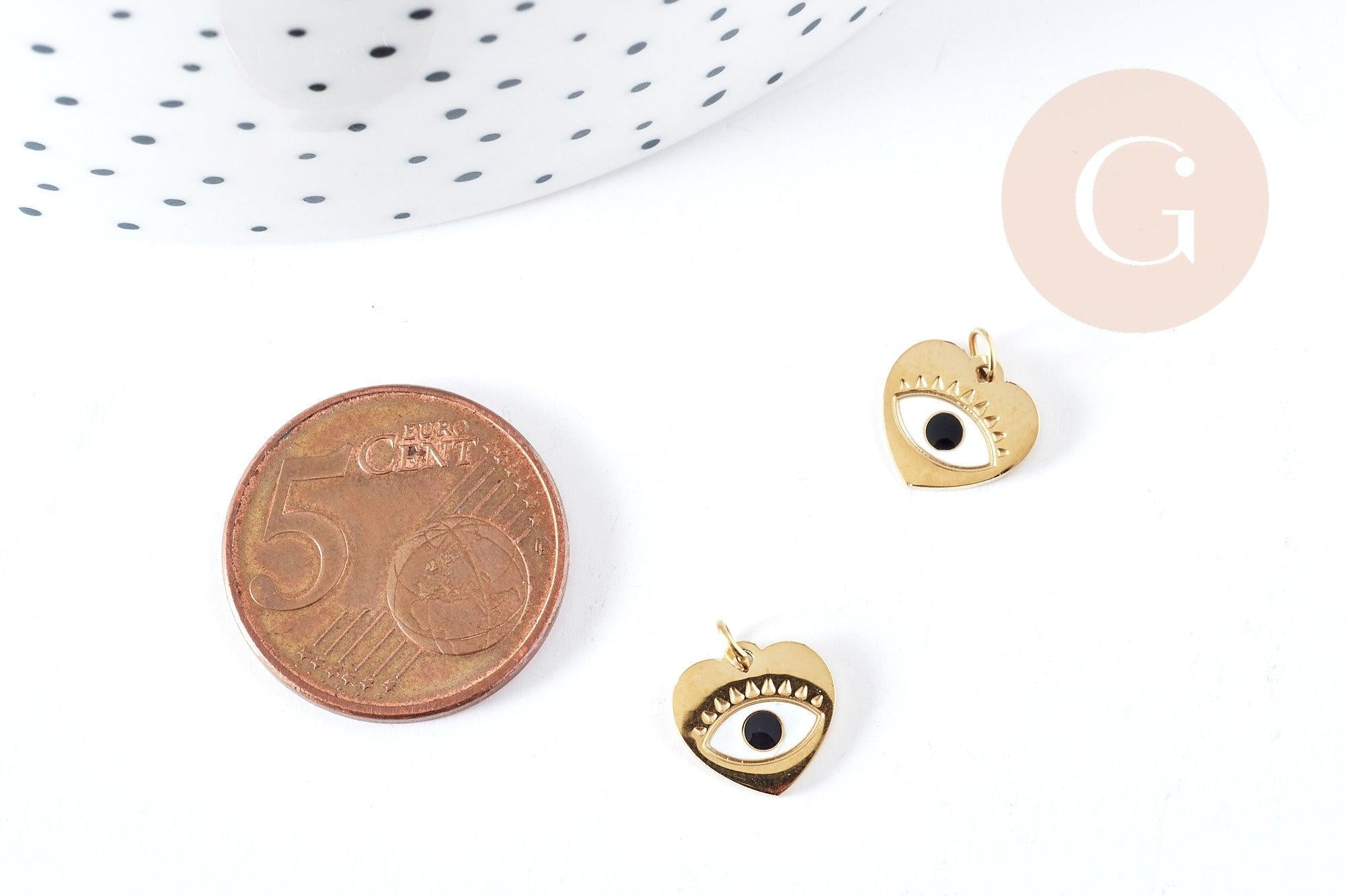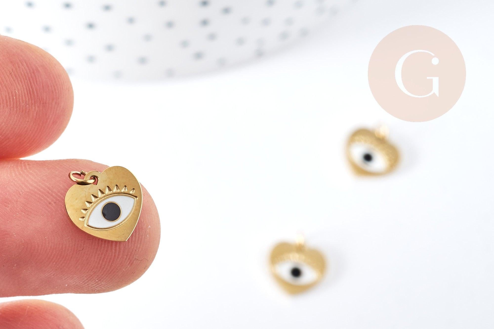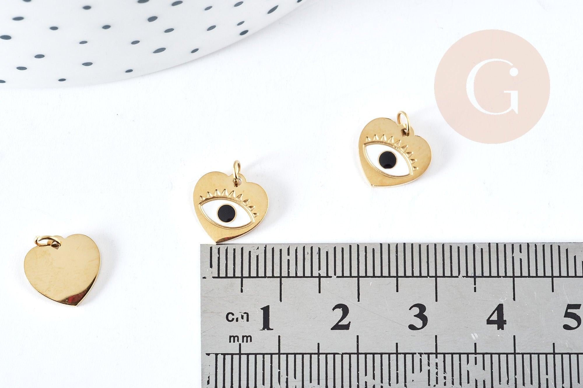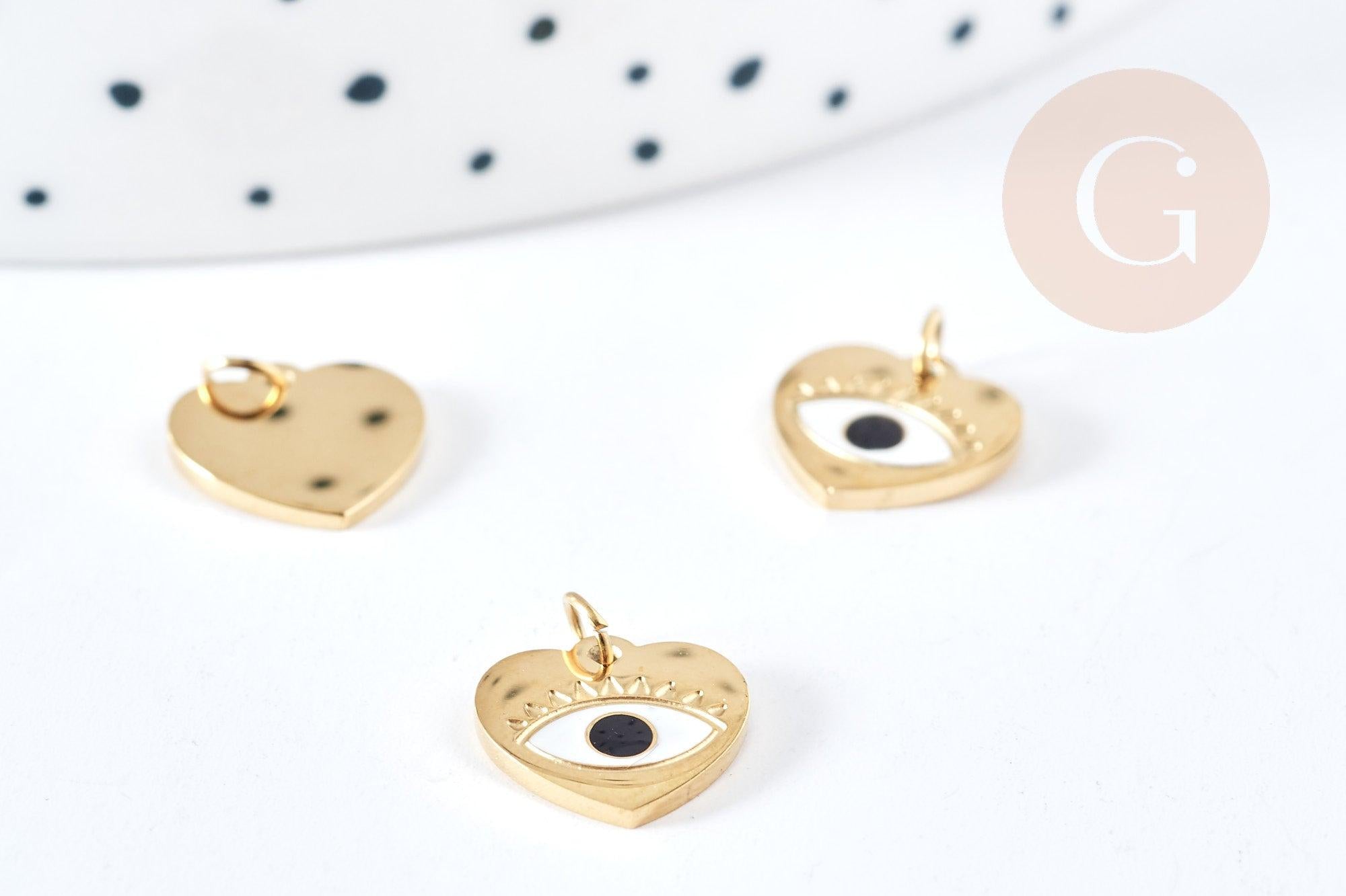 Añade un toque de encanto y protección a tus diseños de joyería con este encantador colgante en forma de corazón con motivo de ojo . Fabricado en acero inoxidable 316 chapado en oro, este colgante combina belleza y durabilidad para sus proyectos de joyería DIY.