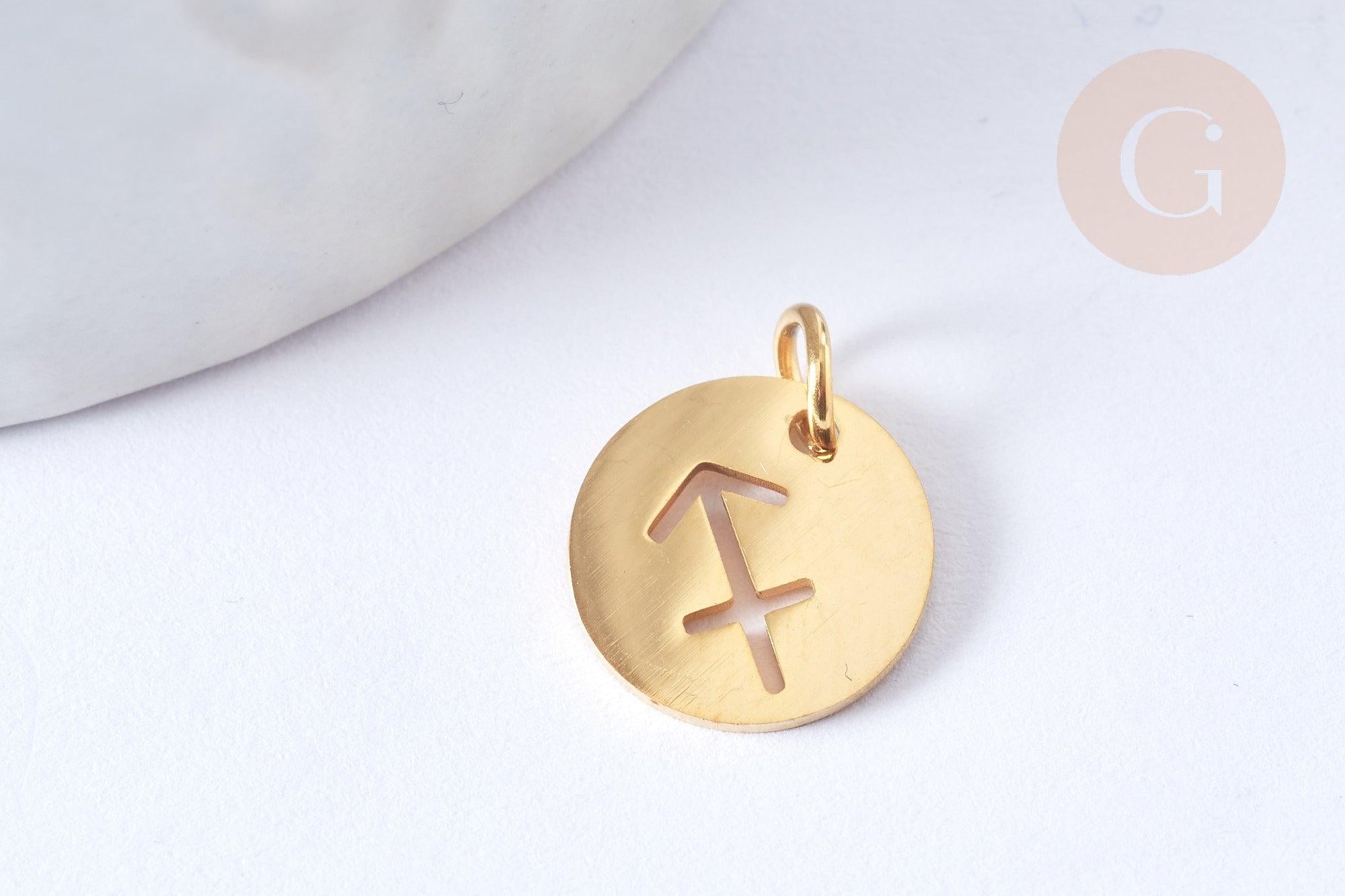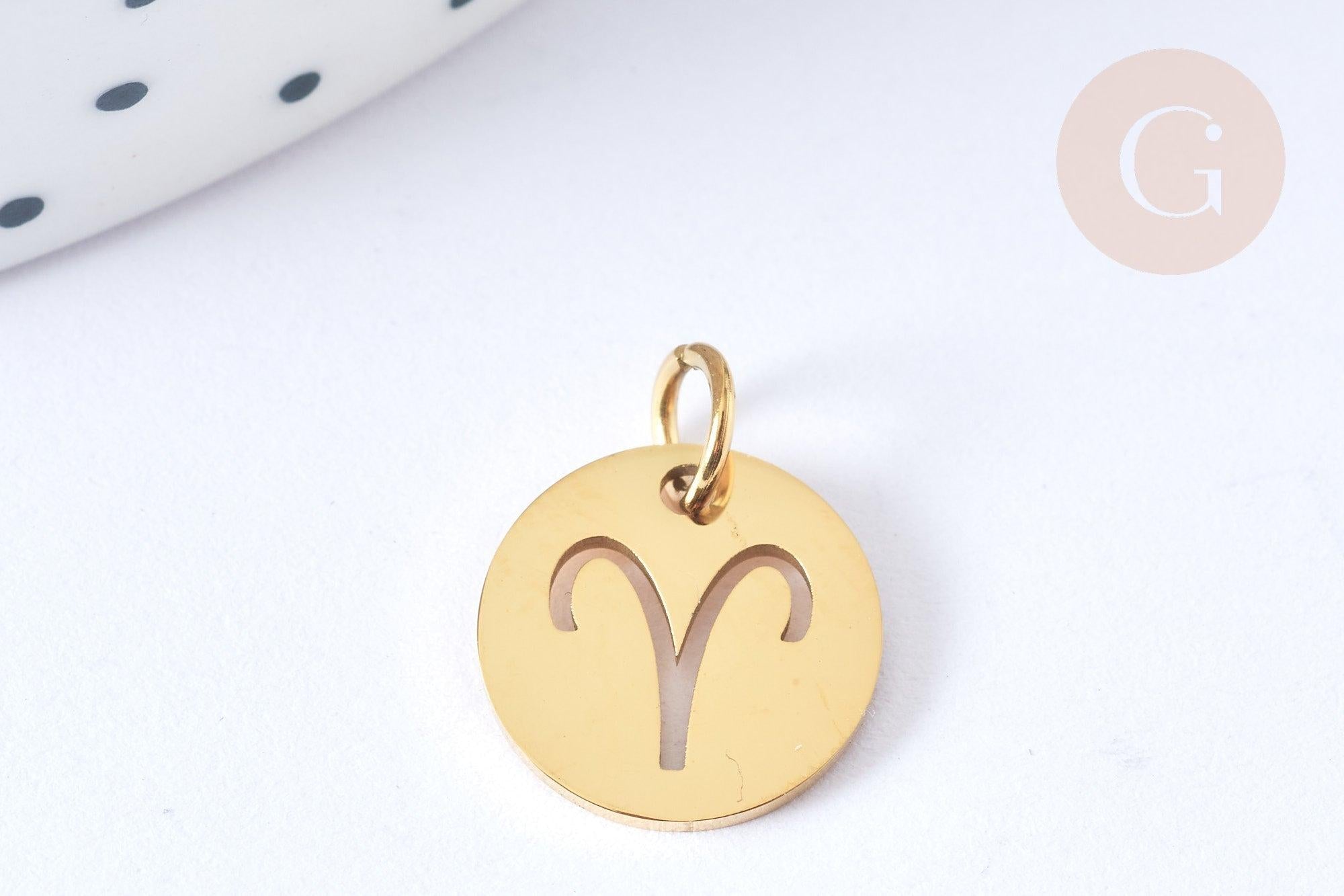 Déjese seducir por estos charms redondos calados de acero inoxidable 304 dorado que representan los signos astrológicos.