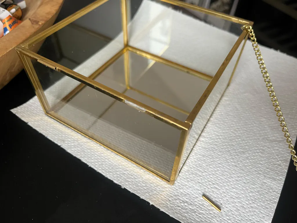 Añade un toque de elegancia y refinamiento a tu hogar con este joyero de cristal transparente y metal dorado de Gingerlily .
