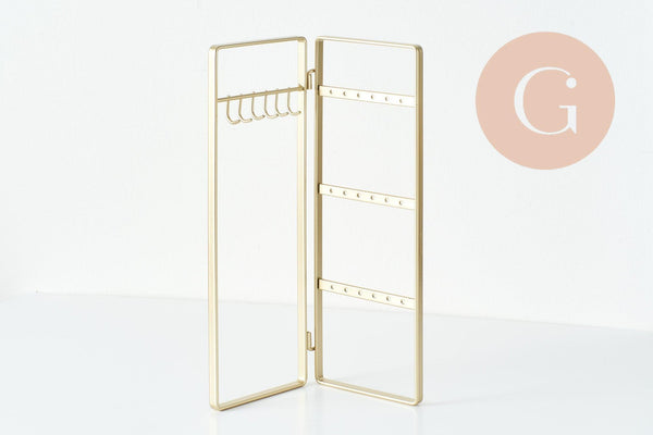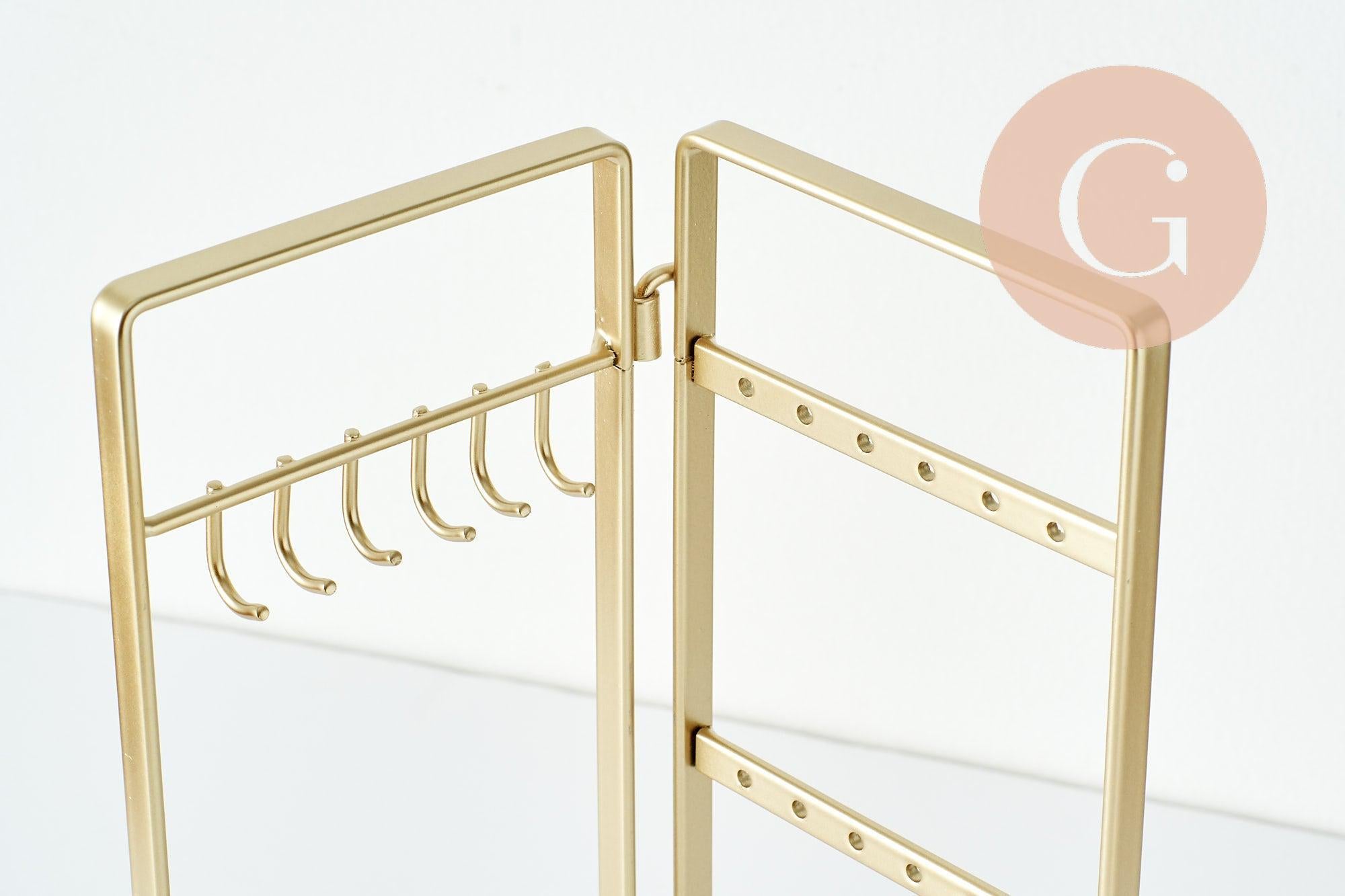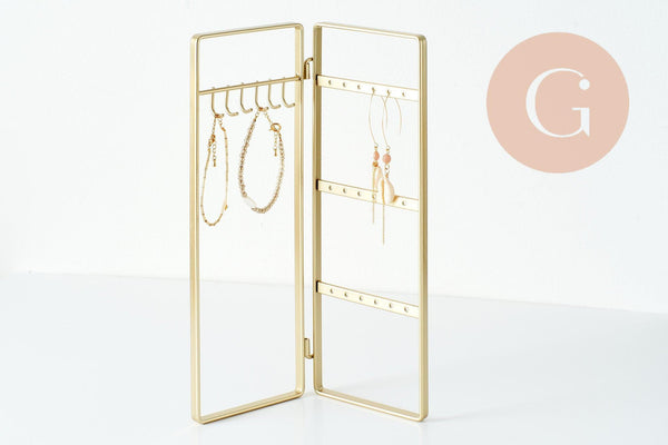 Este porta joyas se compone de dos partes plegables que lo hacen estable para que puedas colocar todas tus joyas hechas a mano sin dañarlas.