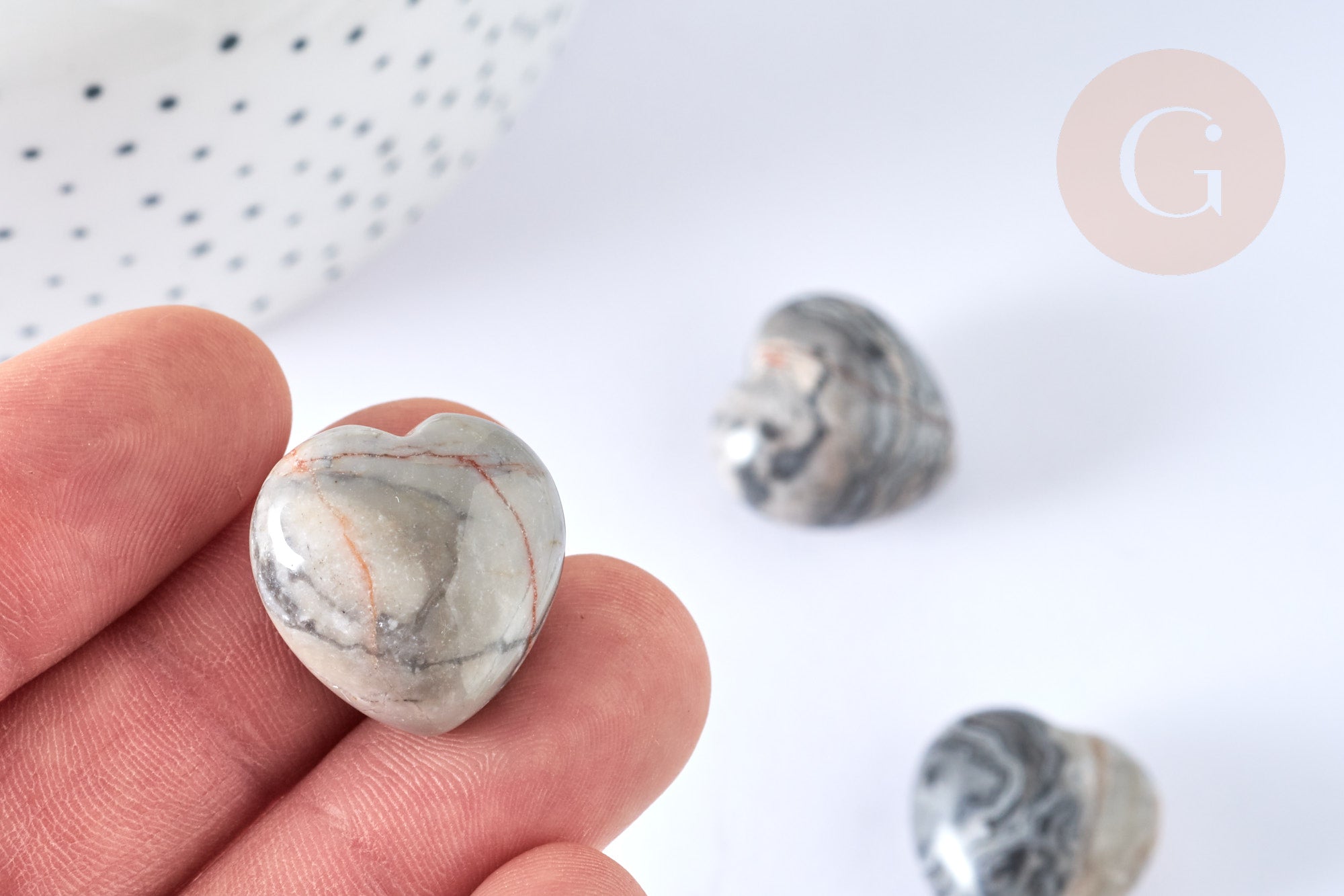 Jaspe Picasso natural decorativo en forma de corazón para sanación con cristales, piedra de 20 mm, x1 (G7178)