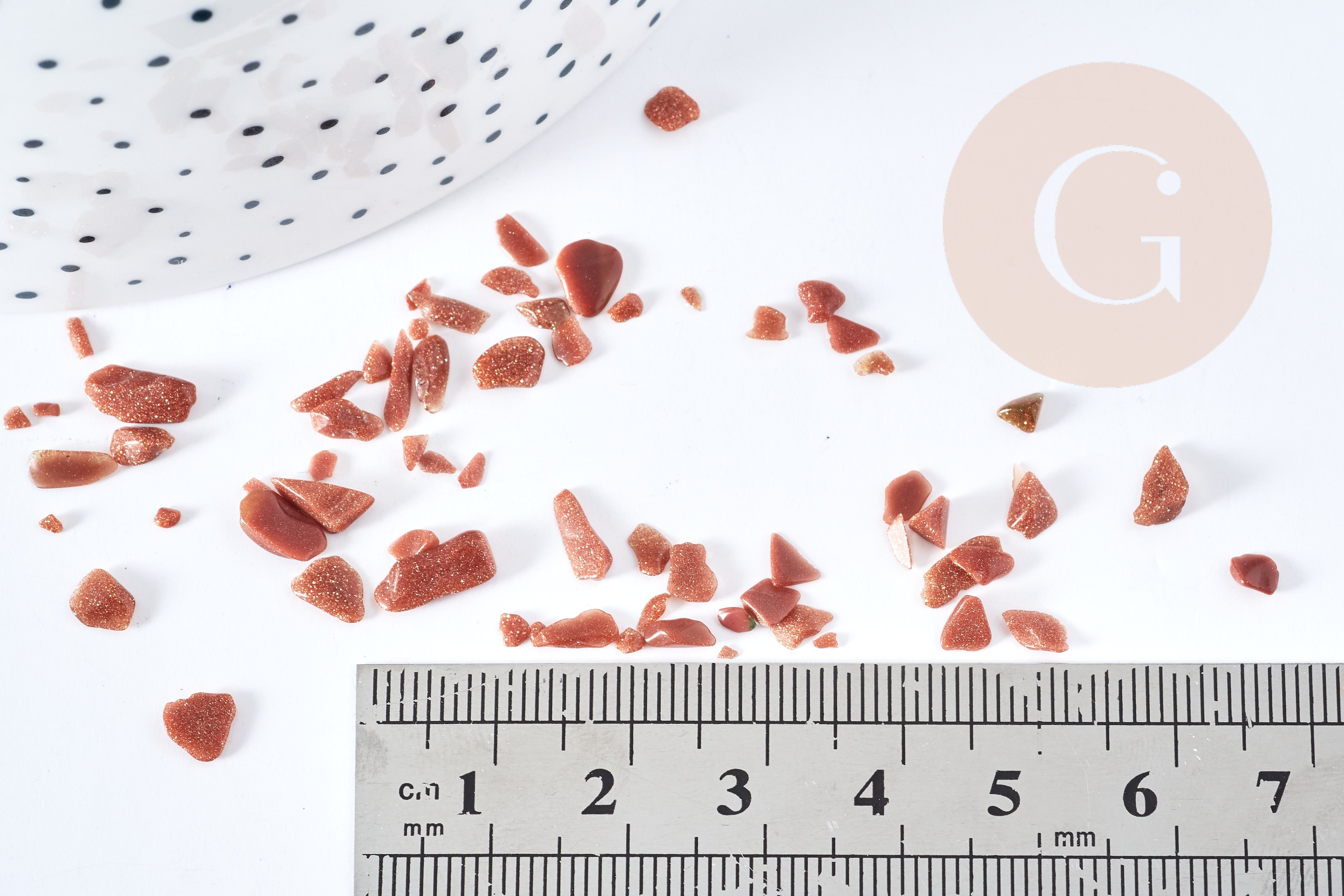 Sable chips pierre du soleil de synthèse 2-8mm non percé, x20gr (G8630)