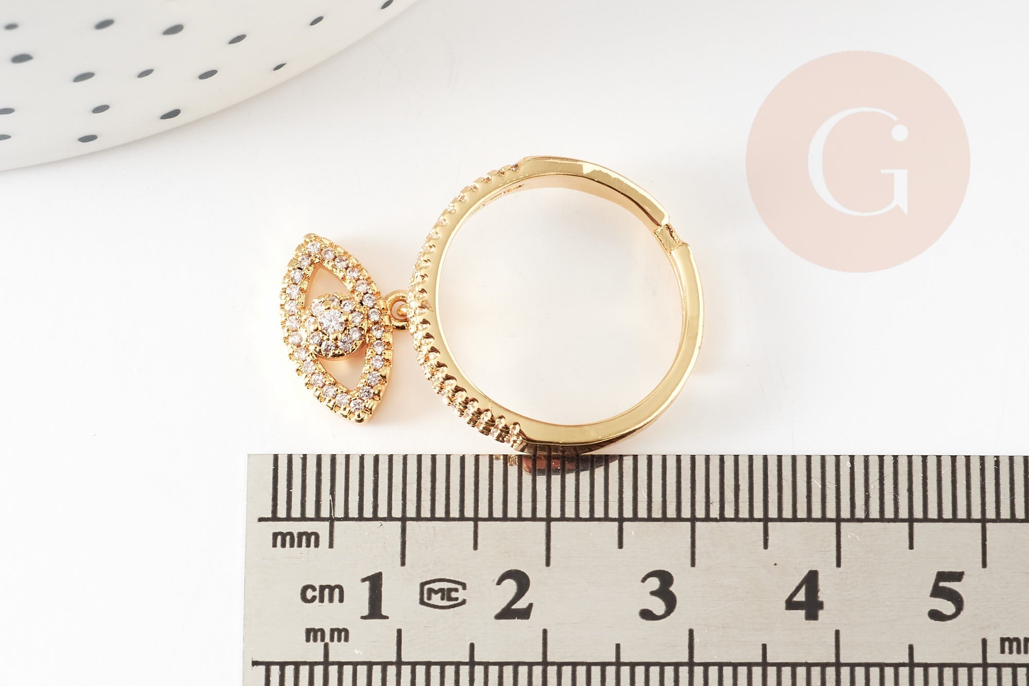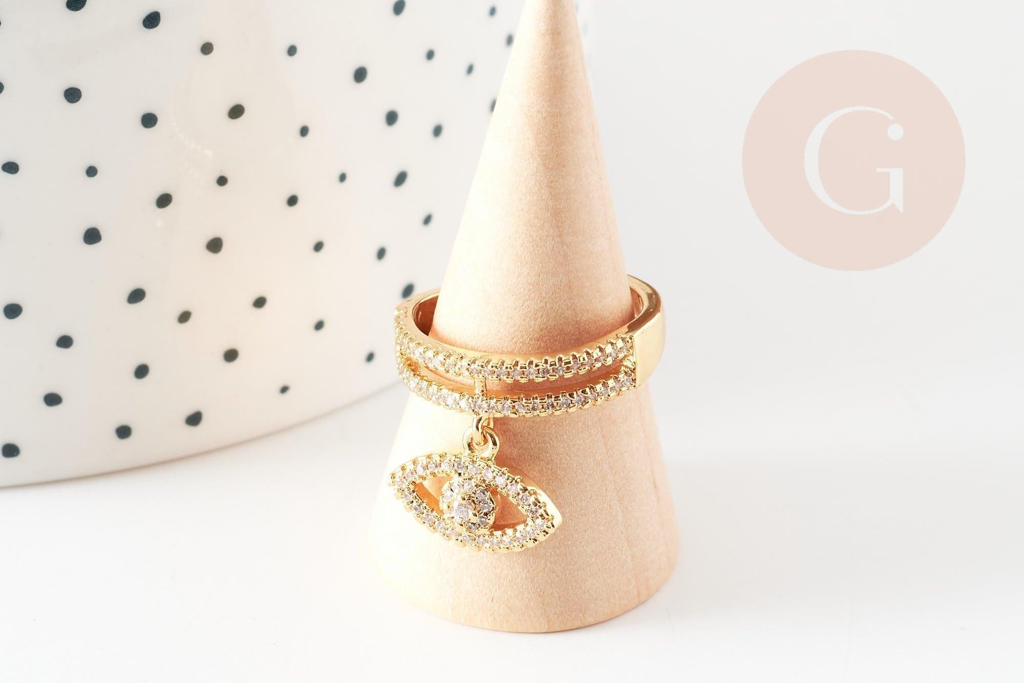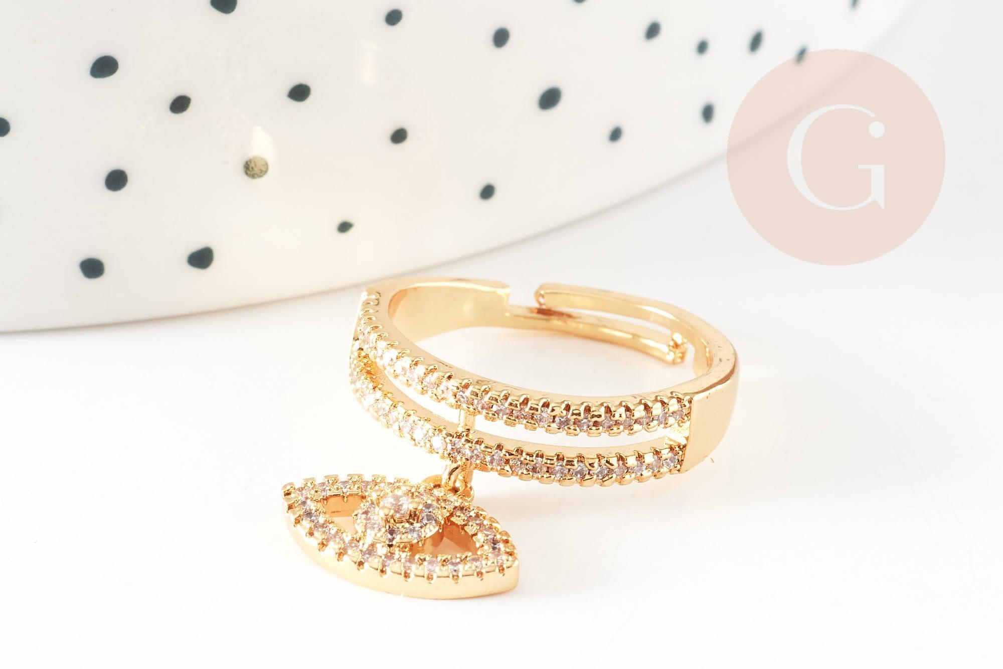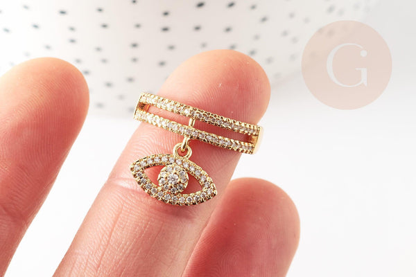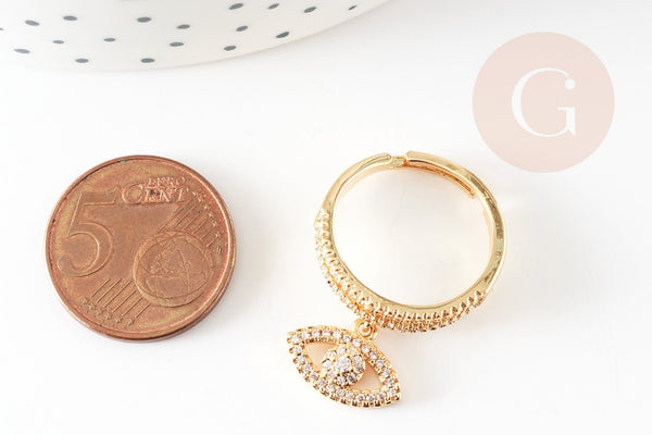 Charm anillo ajustable de latón dorado ojo protector circonita 17 mm, x1 (G4464)