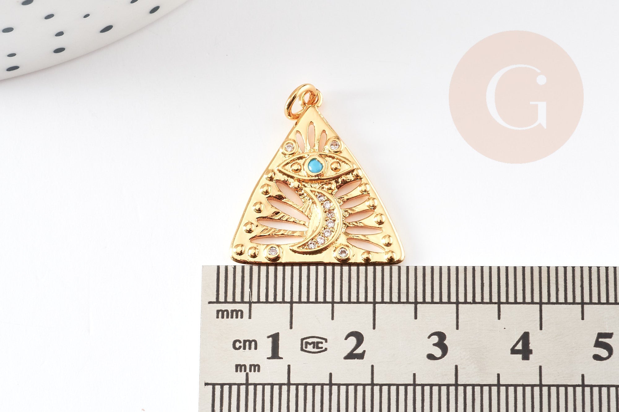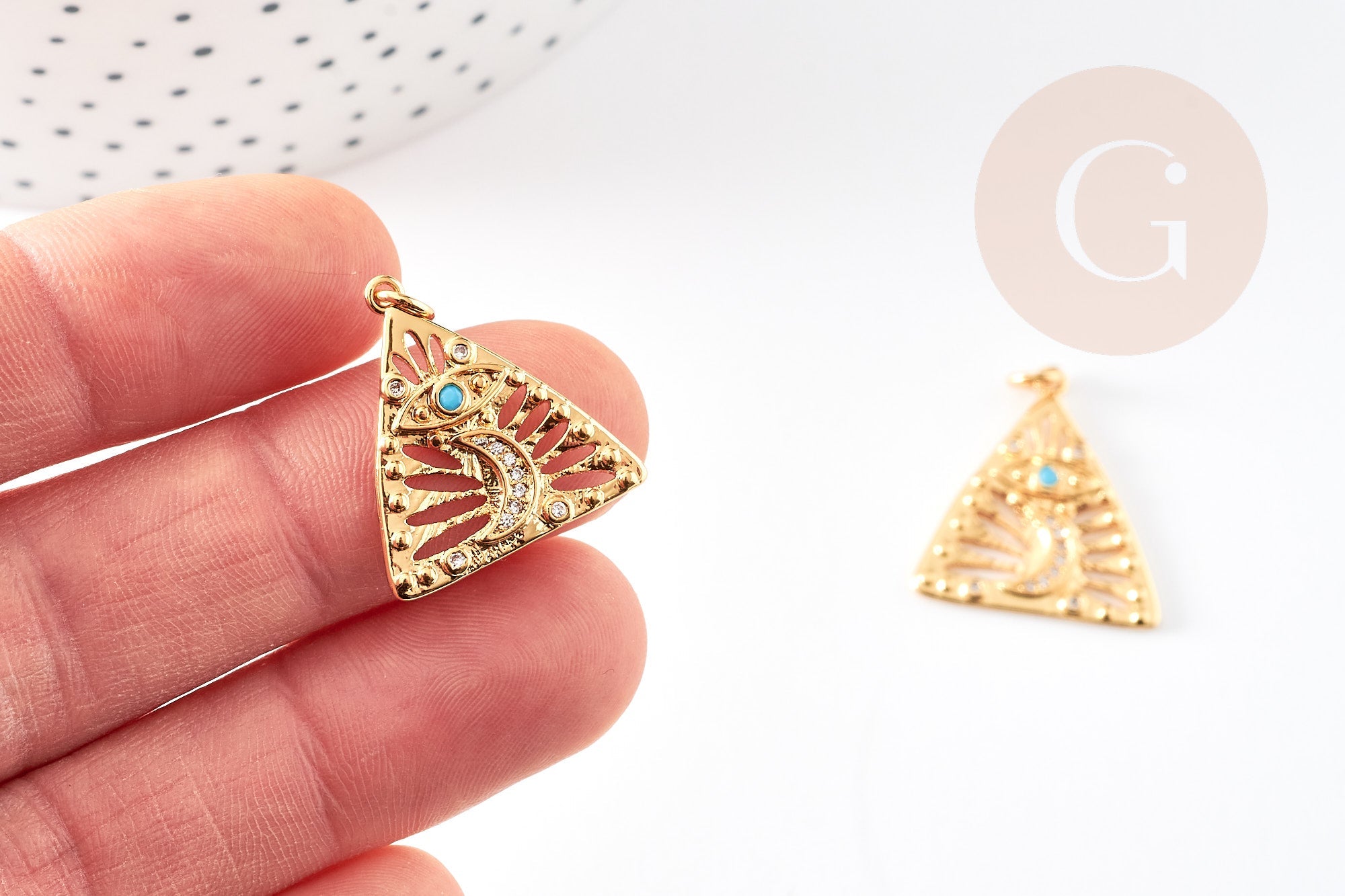 Pendentif triangle oeil laiton doré 18K texturé pierre 23mm, pendentif doré sans nickel pour la création bijoux, x1 G4747