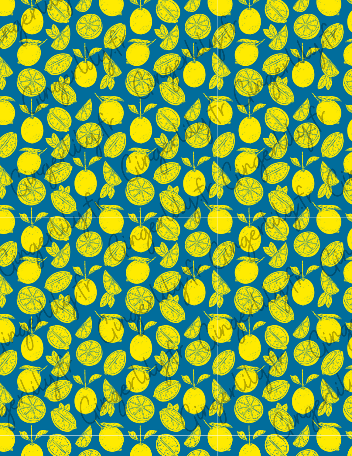 • Patrón: limones amarillos sobre fondo azul.
