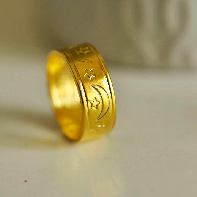 Anillo de estrellas lunares ajustable, creación de joyas, anillo de latón crudo, joyería minimalista, creación de joyas, anillo dorado, soporte de anillo, 14 mm, ambos Un porta anillos muy bonito en latón en bruto con motivos de luna y estrella....