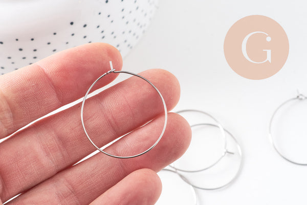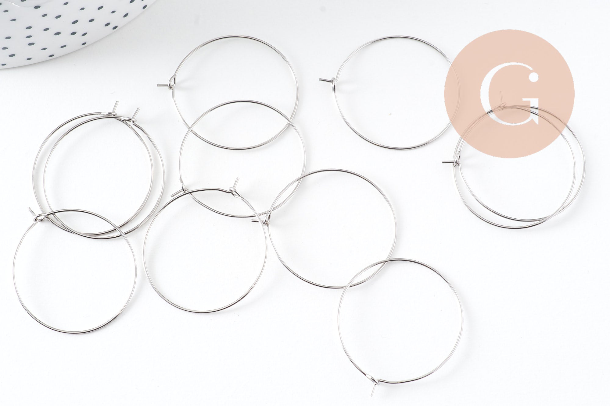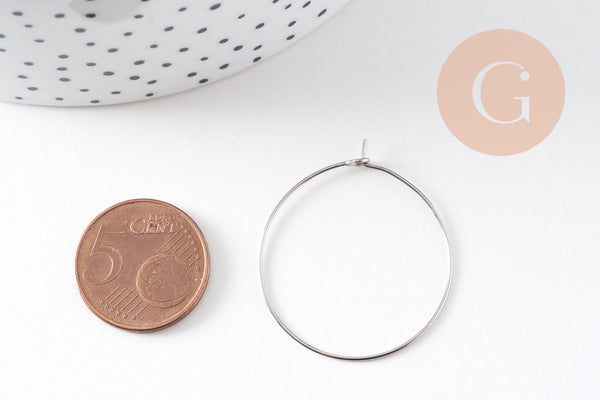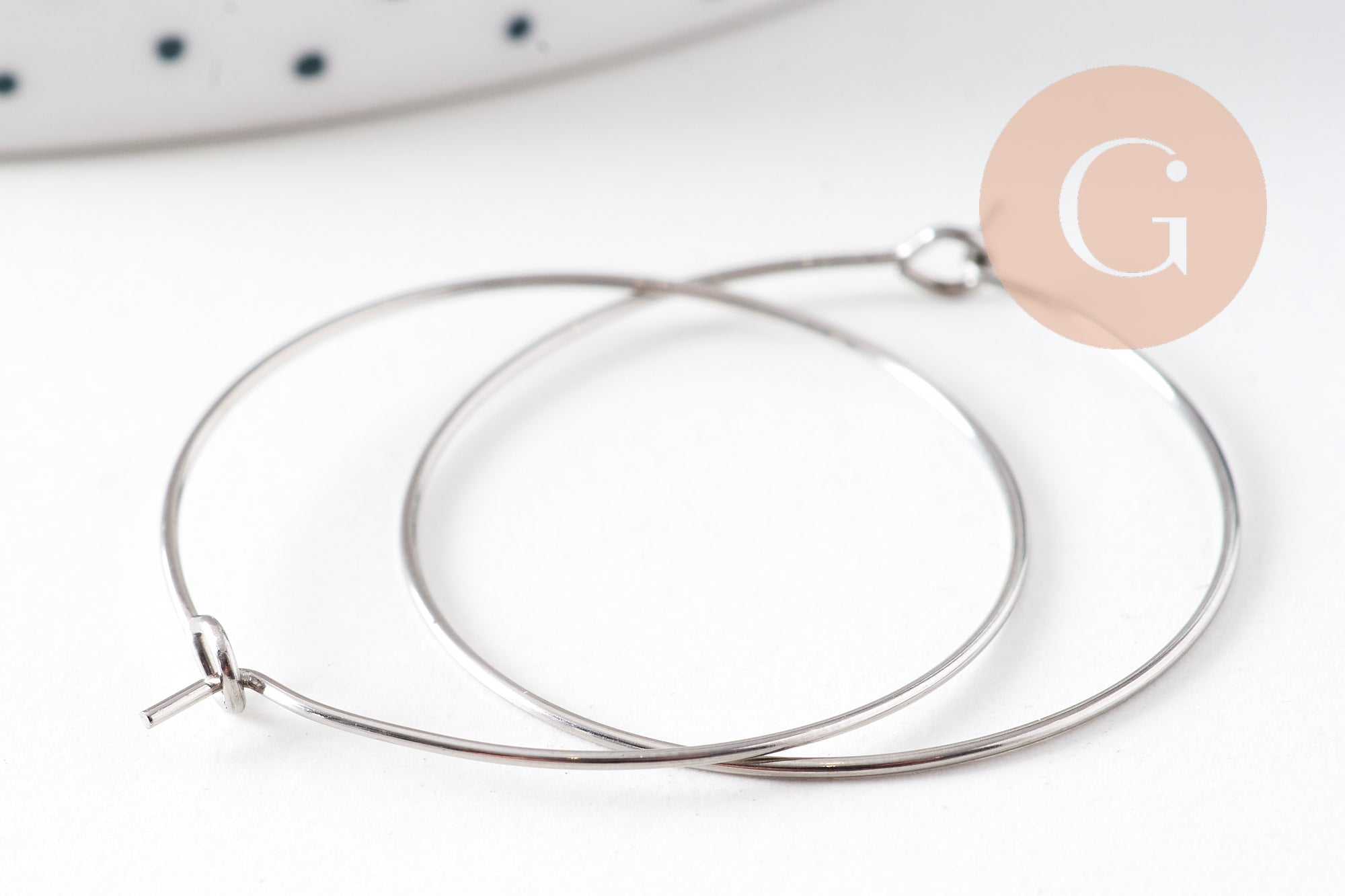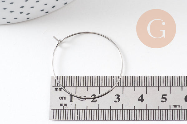 Anneaux créoles acier 304 inoxydable platine 30mm, x20-50-100 (G10844)