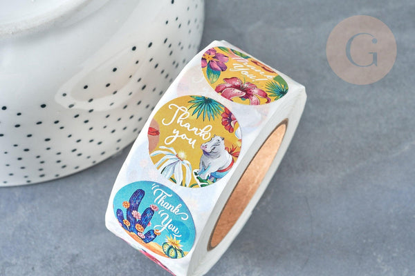 Para decorar tus paquetes, papeles, tarjetas, regalos pero también todas las superficies personalizables , este rollo de pegatinas será perfecto para agradecer a tus amigos y clientes.