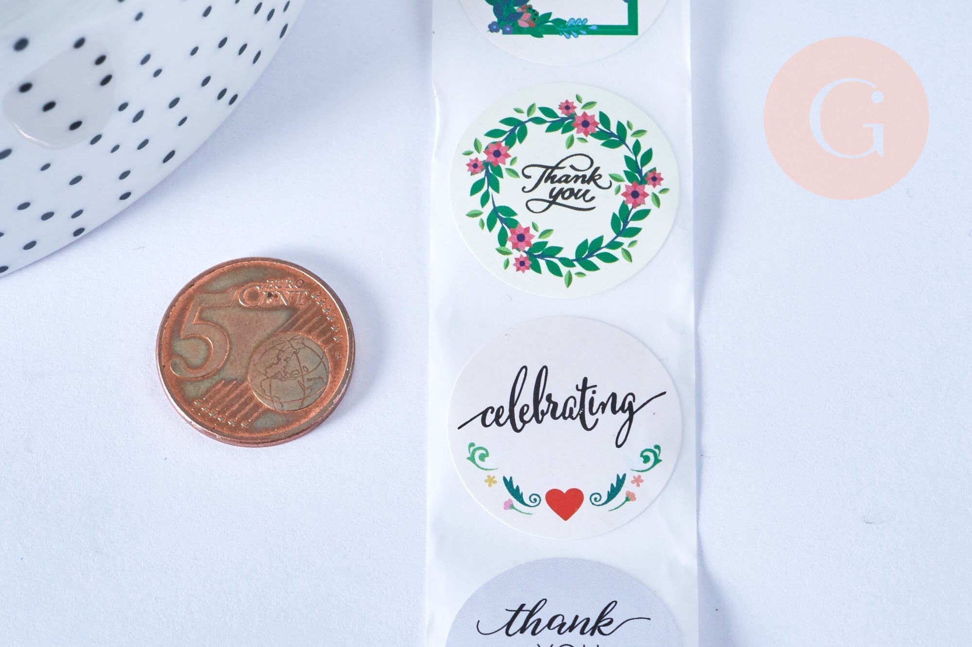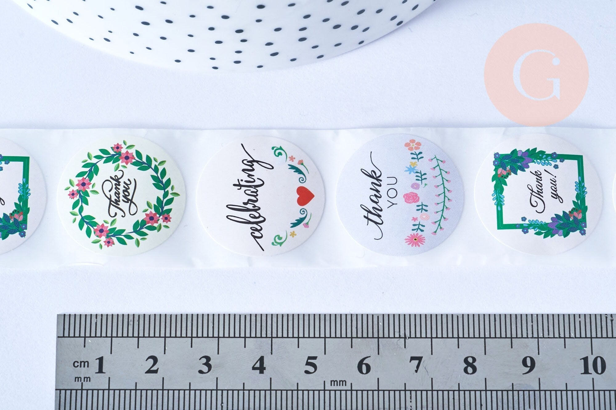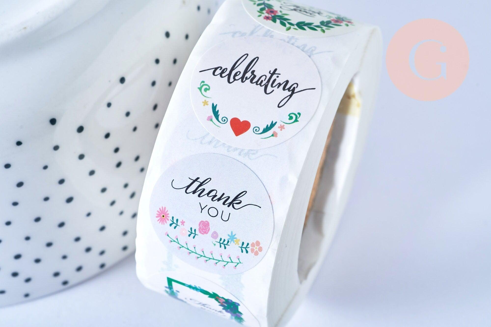 - Diseños elegantes: Cada pegatina presenta un delicado diseño de planta con las palabras "GRACIAS" o "CELEBRANDO", perfecto para expresar su gratitud o agregar una nota festiva a sus creaciones.