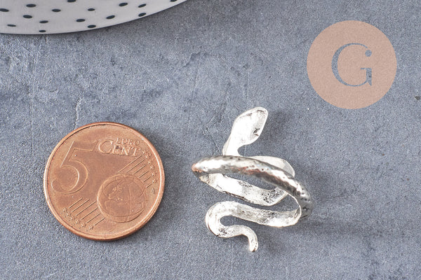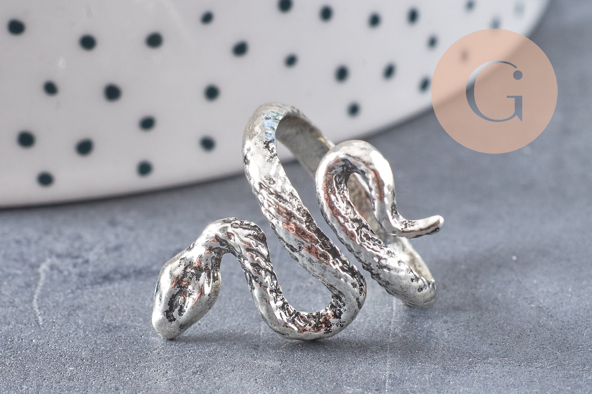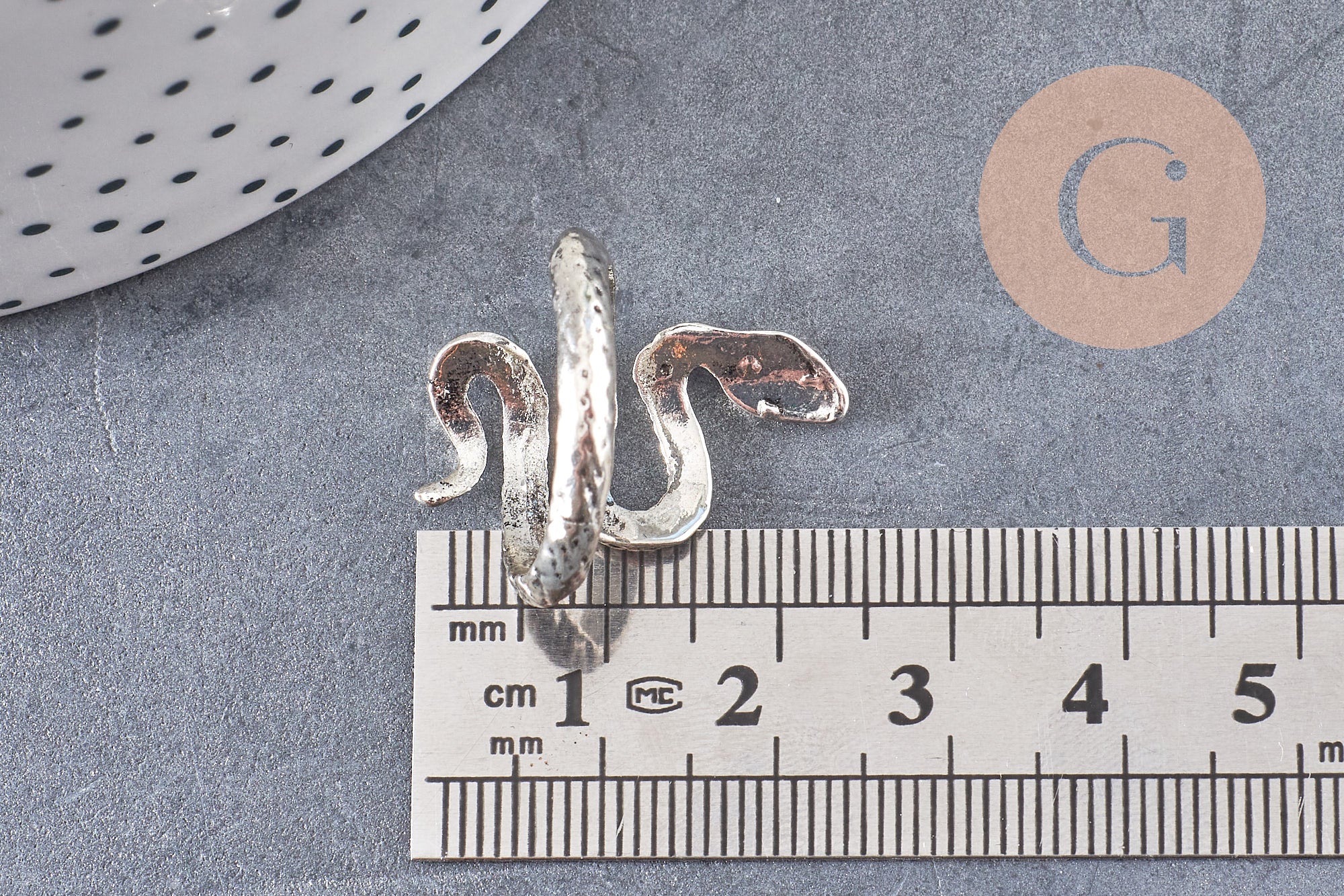 Precioso porta anillos regulable en metal zamac plateado con motivo trabajado en forma de serpiente.