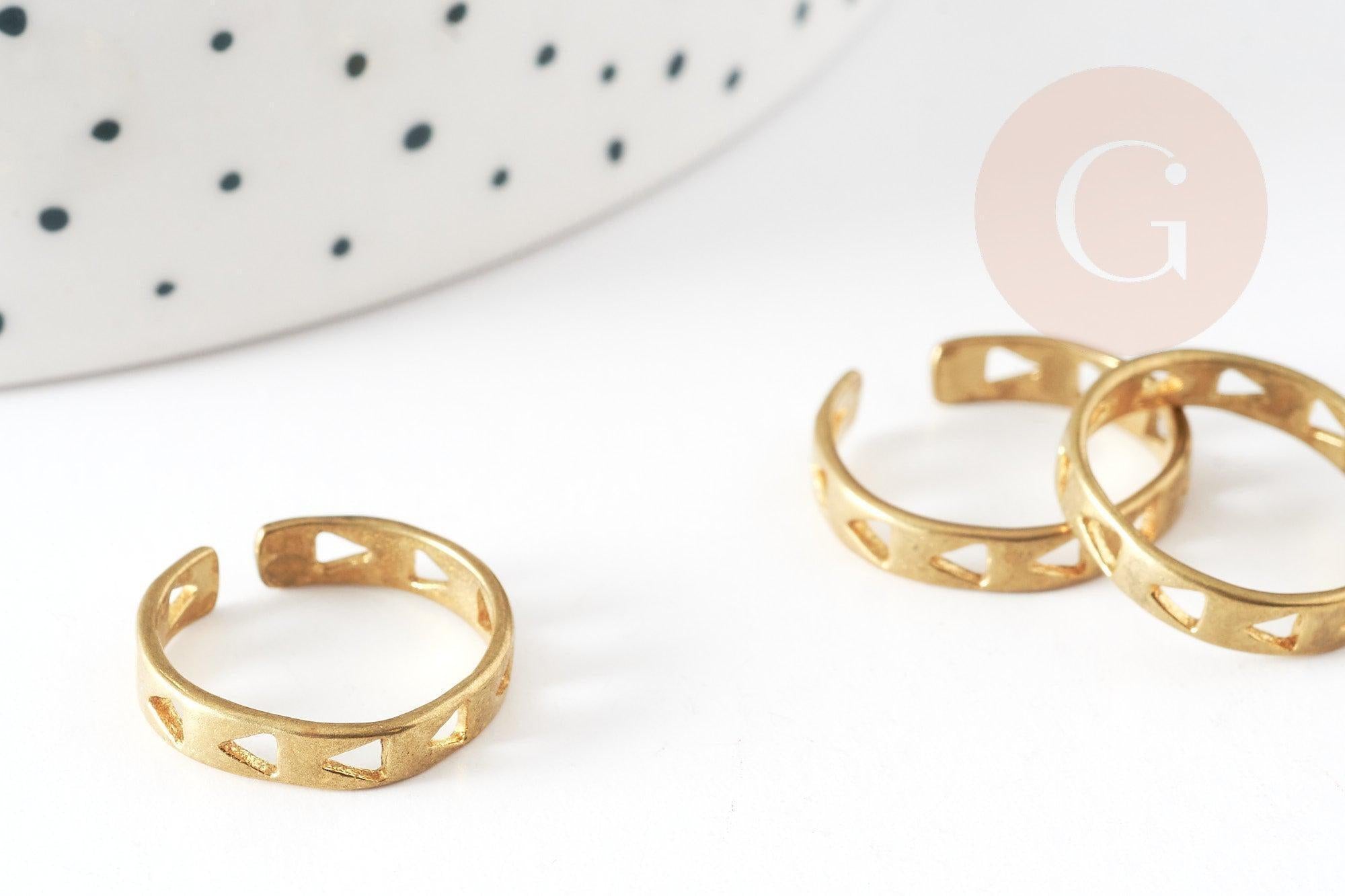 Un porta anillos muy bonito en latón en bruto con un corte geométrico con pequeños triángulos, contemporáneo.