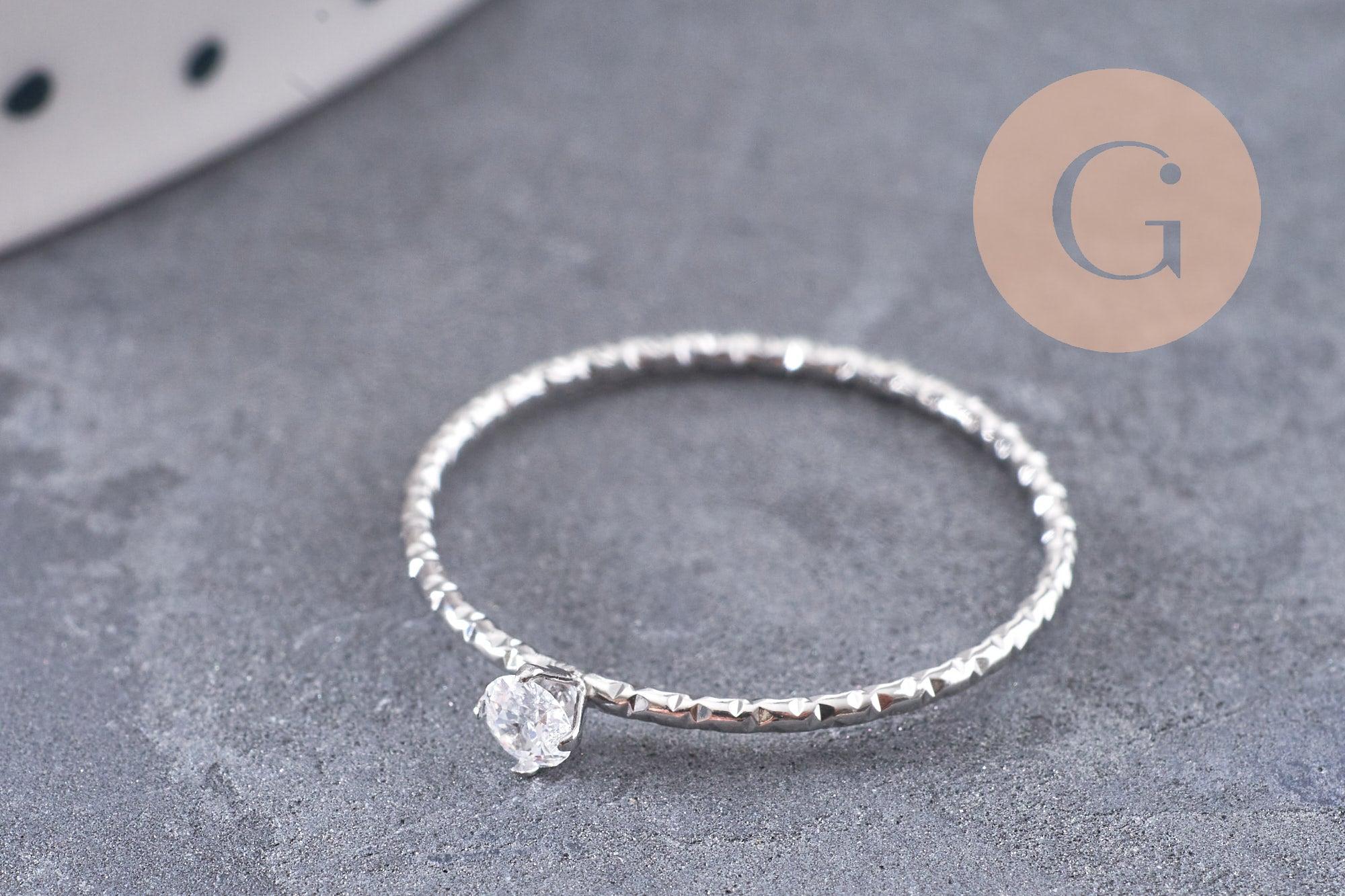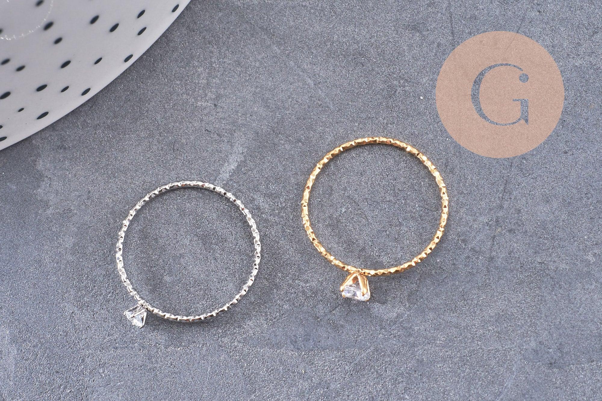 Anillo solitario de circonita en acero inoxidable 304, oro o platino, talla 54, x1 (G10361)