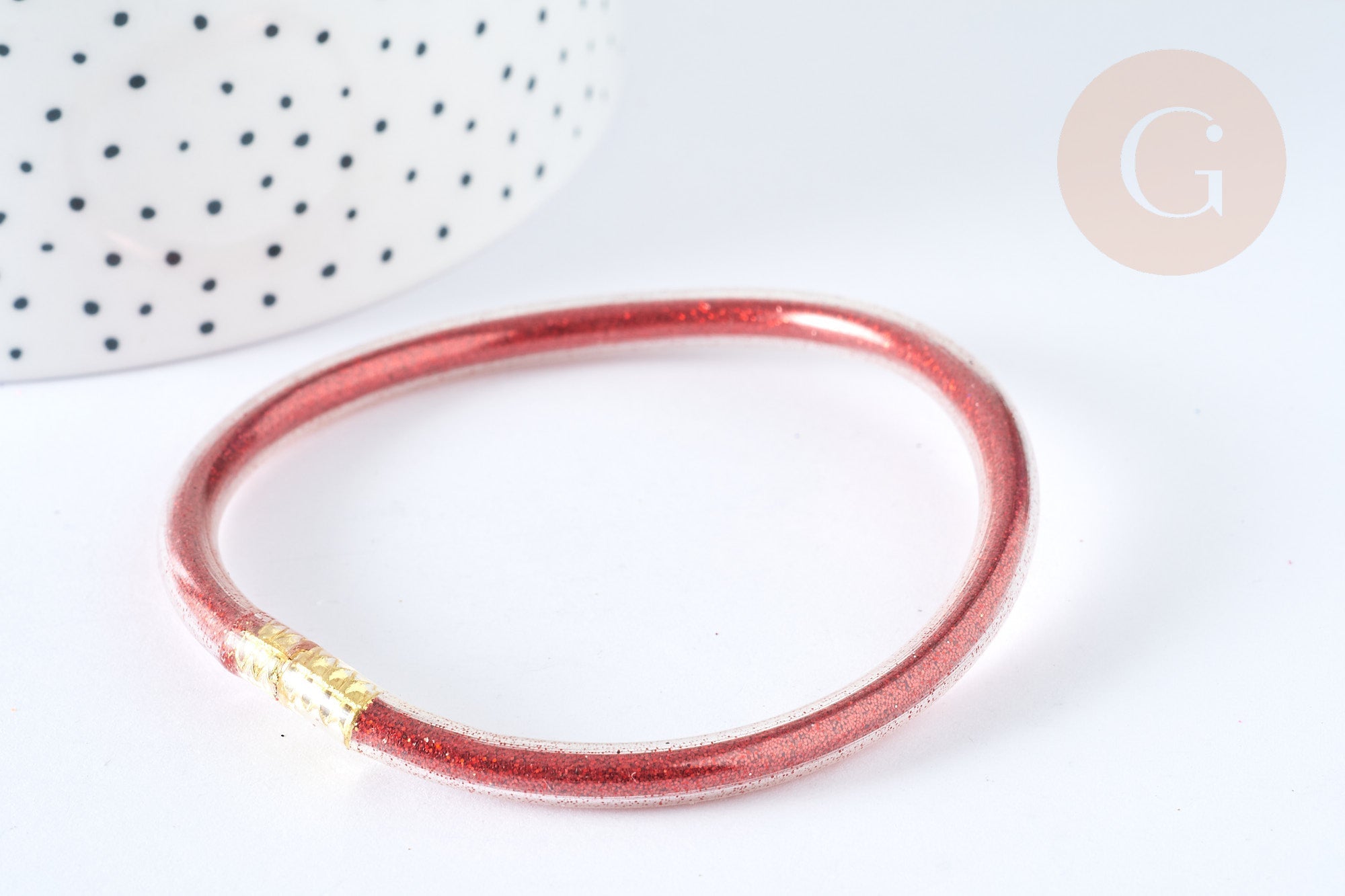 Crea bisutería al estilo de los años 90 con esta base de pulsera de tubo de plástico PVC que contiene purpurina. Azul, morado, rojo, negro o verde, ¡sé creativo!