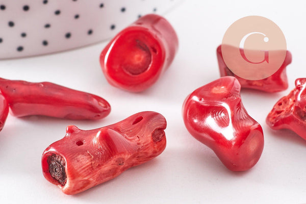 Rama de coral rojo oscuro perforada, cuentas de coral, coral natural, perla natural, concha, perla roja, creación de joyas, 25-70 mm Perla grande en coral natural teñido de rojo. Completarán perfectamente un collar, embellecerán un colgante o un par de...
