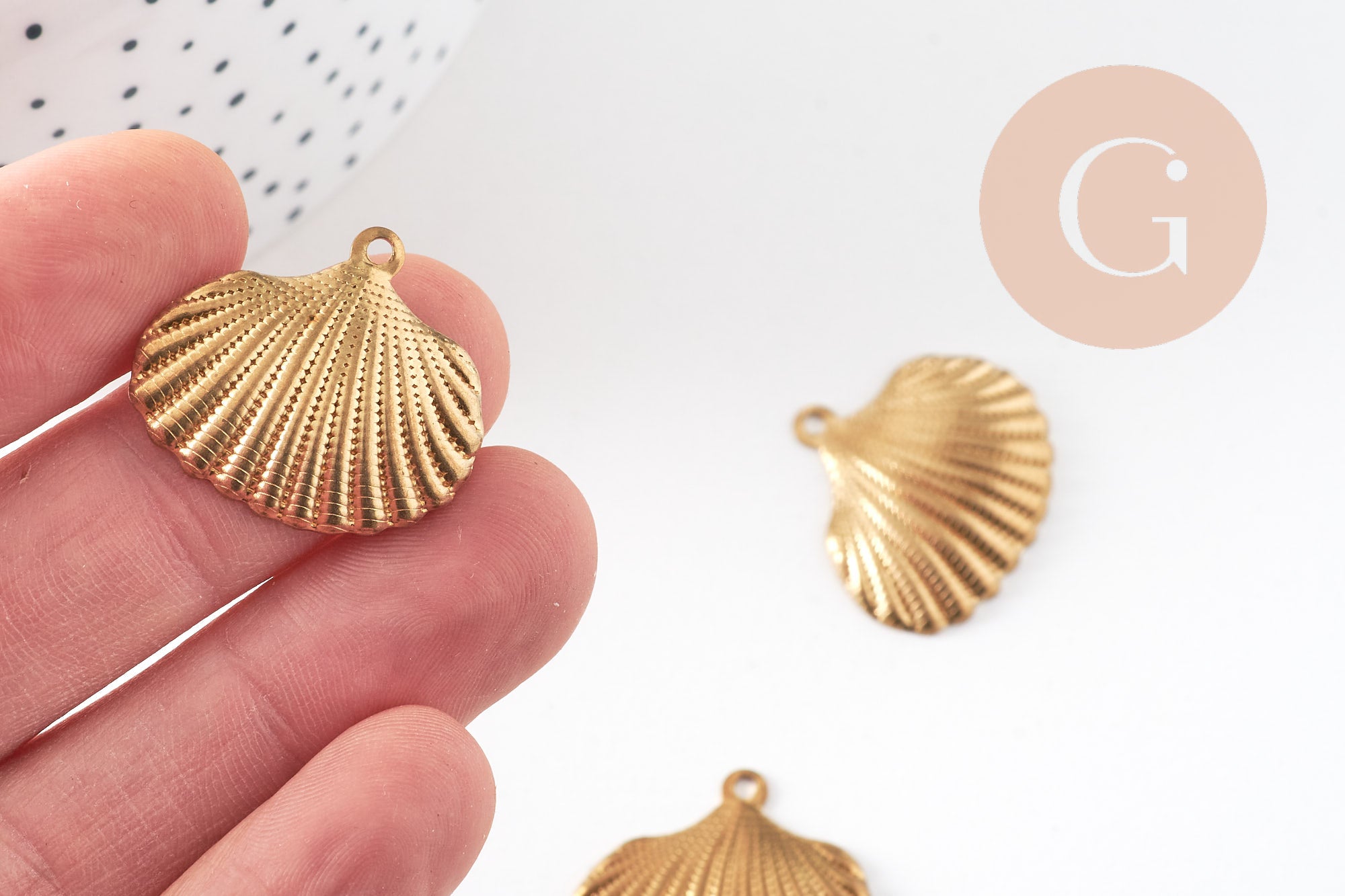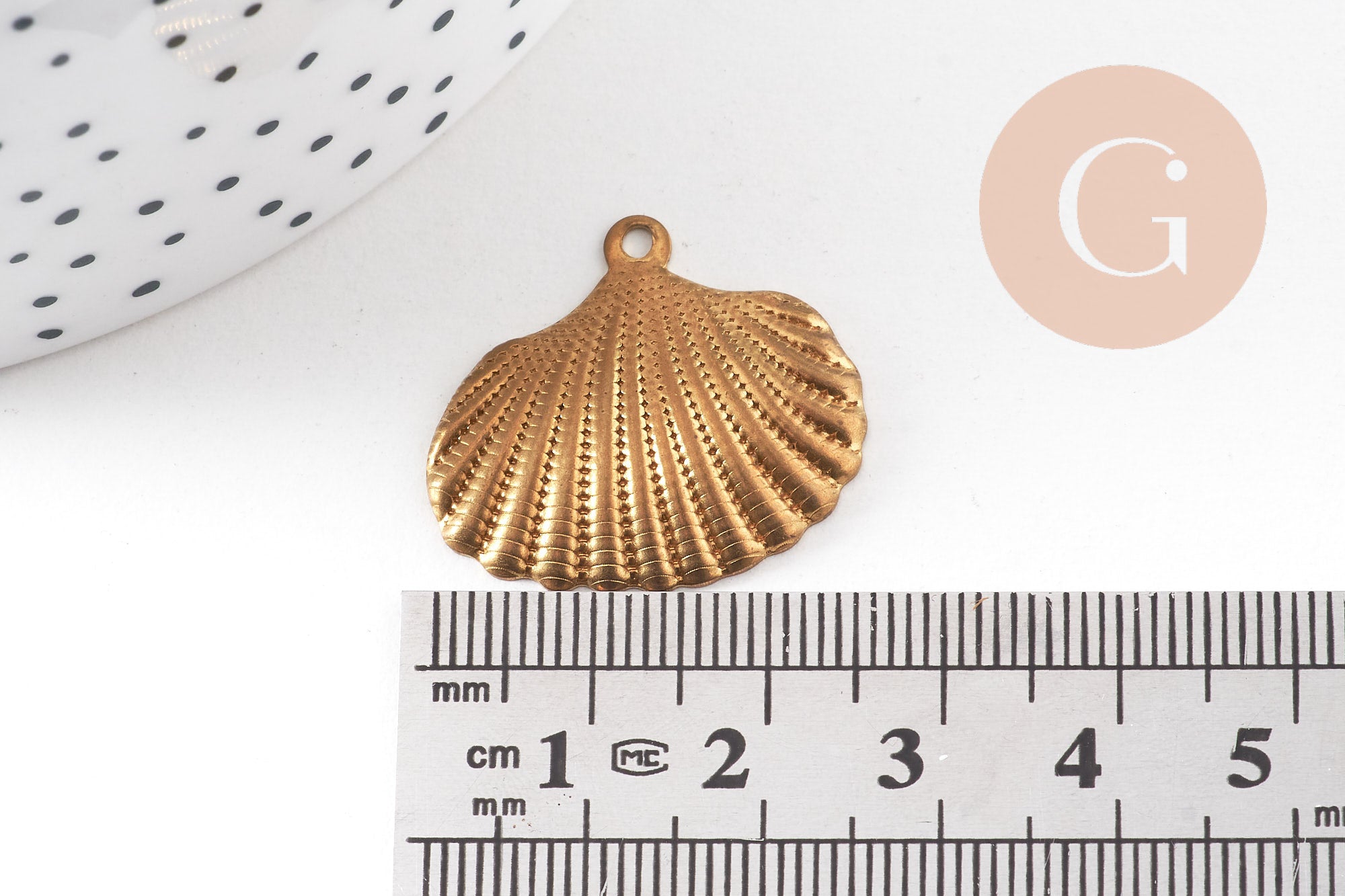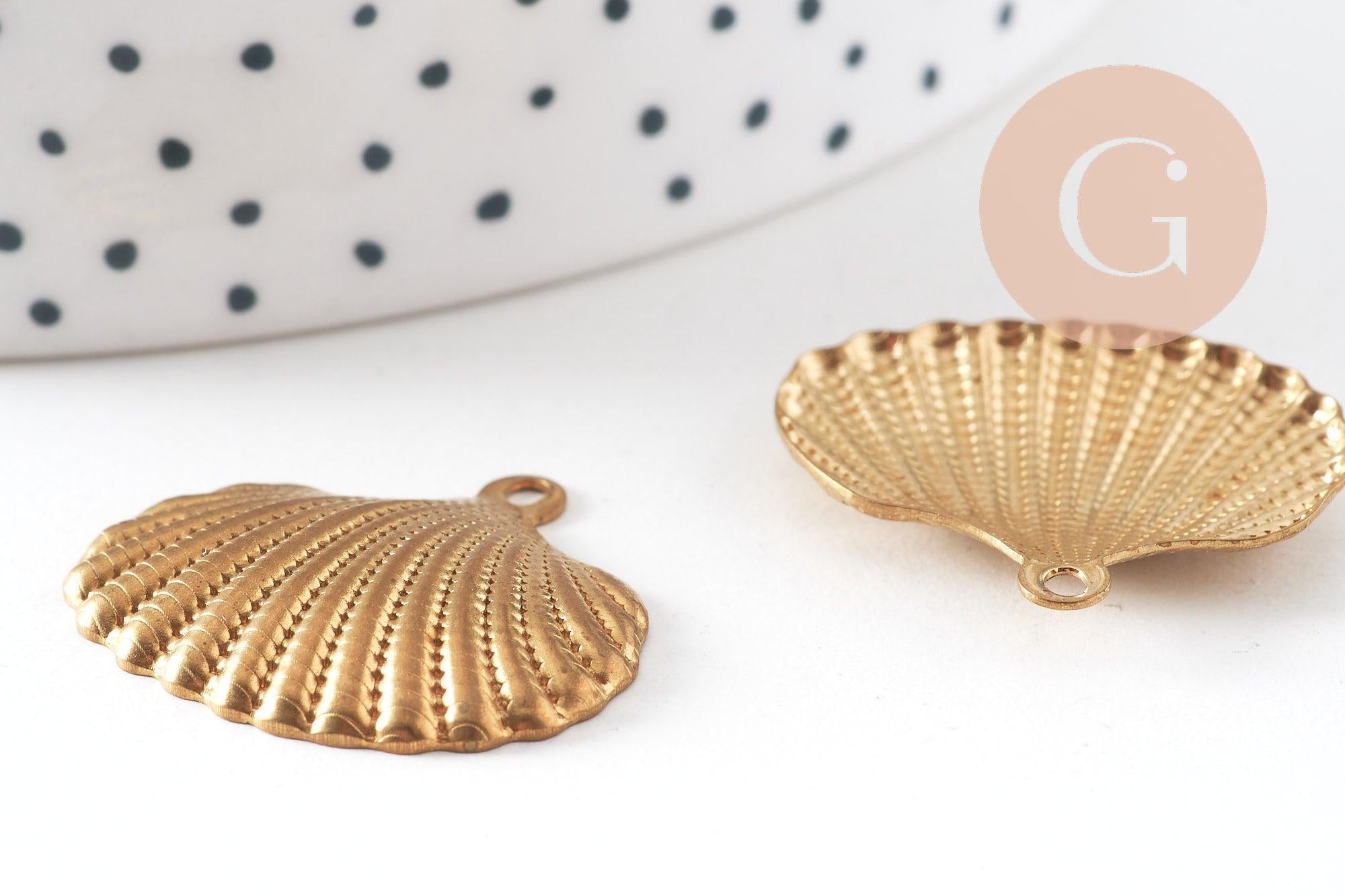 Breloque coquillage laiton brut 26mm, breloquesmétal doré pour création bijoux,sans nickel x2 G7268