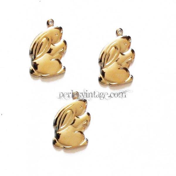 Un bonito colgante de un conejito parado sobre sus cuartos traseros, en metal plateado, ideal para crear un collar vintage sobre el tema Alicia en el País de las Maravillas, el bosque, la naturaleza.