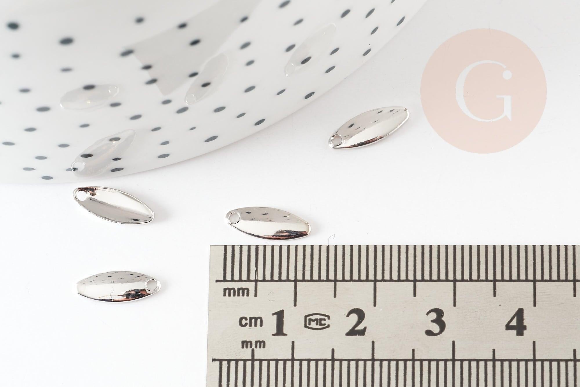Esta pequeña y encantadora lentejuela ovalada o lanzadera está diseñada en cobre y recubierta con un acabado de rodio plateado, añadiendo un toque de brillo refinado a tus creaciones. Es la elección perfecta para hacer bisutería DIY y para personalizar accesorios.
