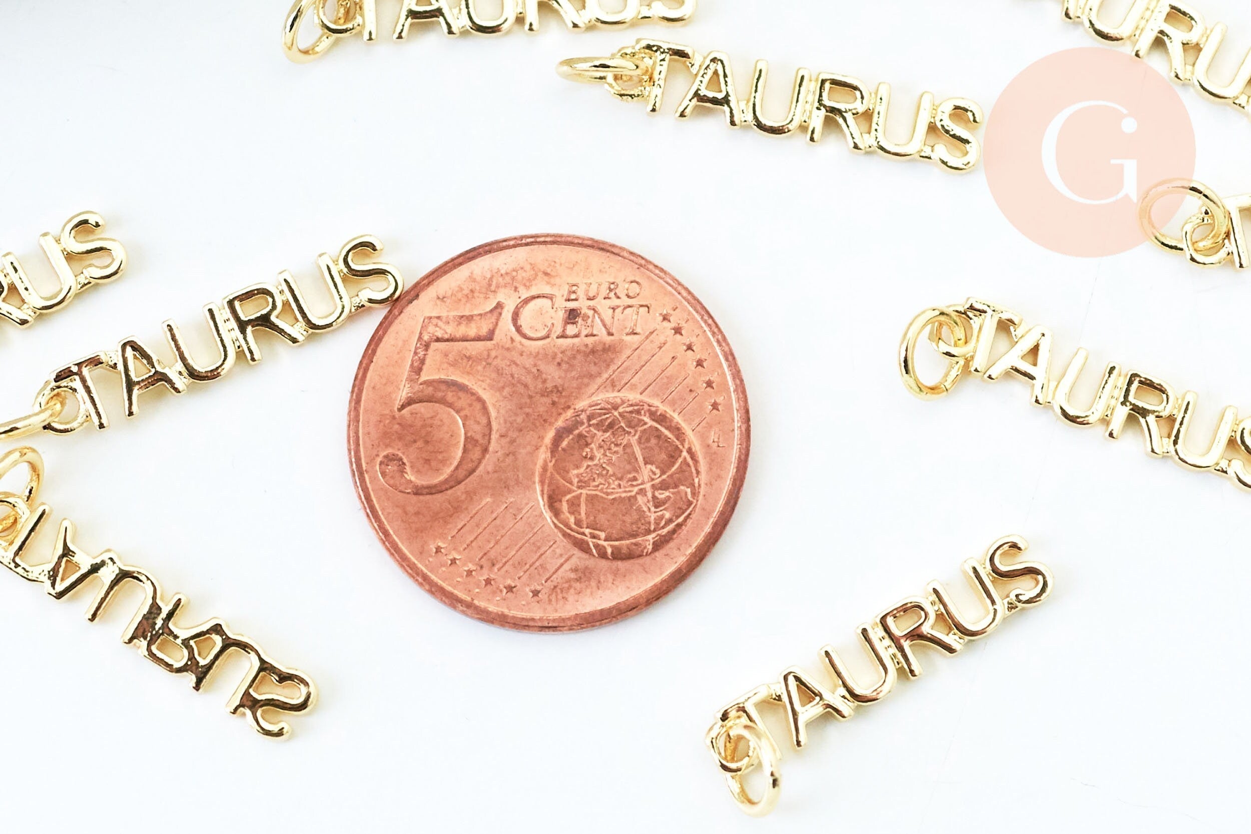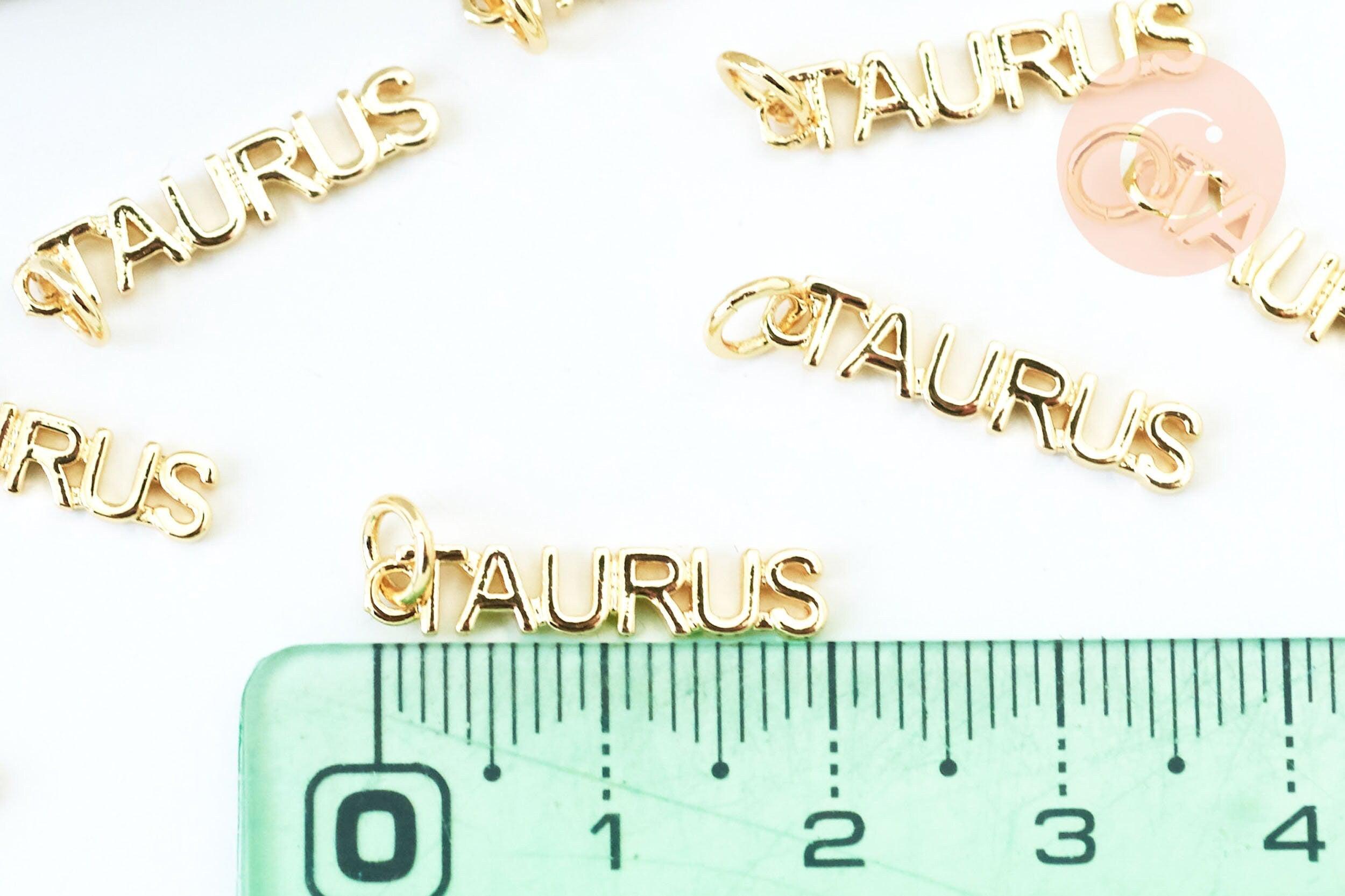 Charm Tauro de latón bañado en oro de 18 quilates, sin níquel, creación de joyería astrológica, colgante horóscopo, 20 mm, x1 G6043