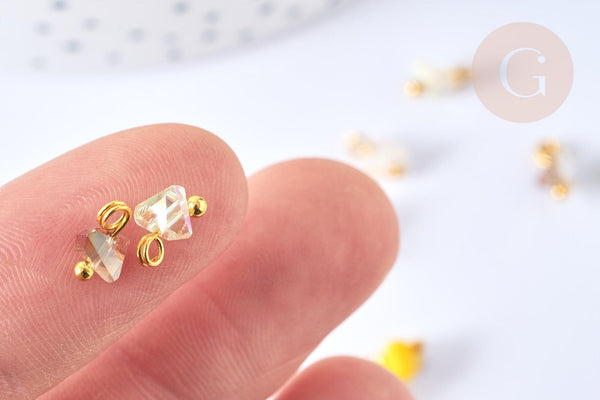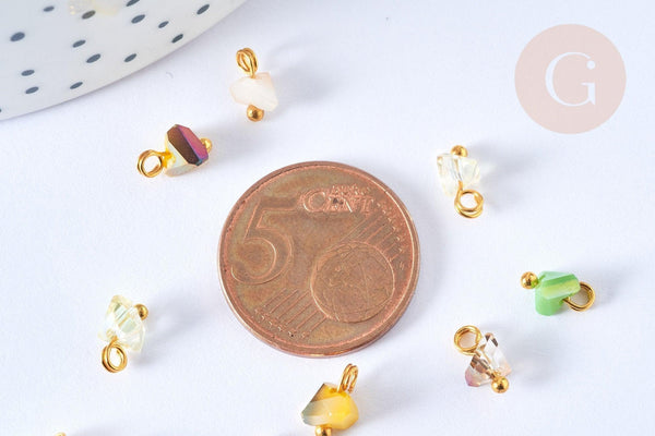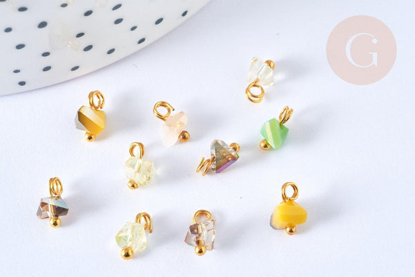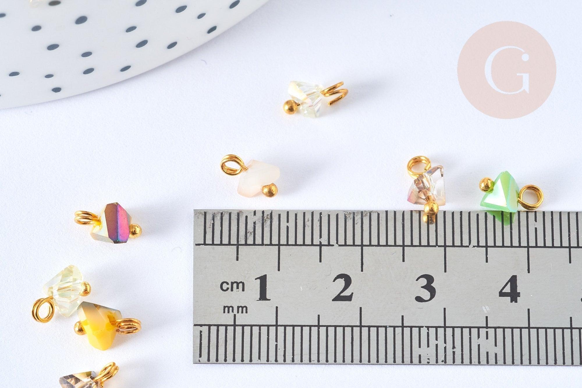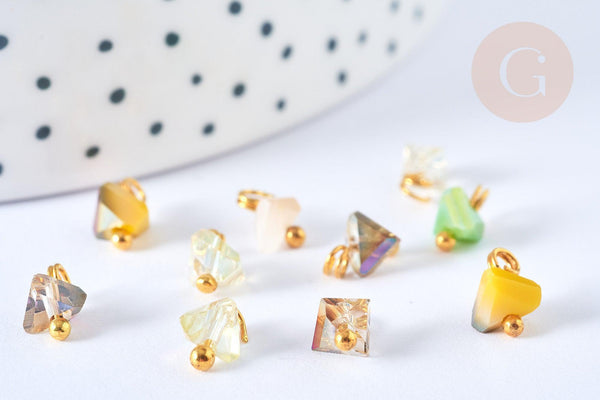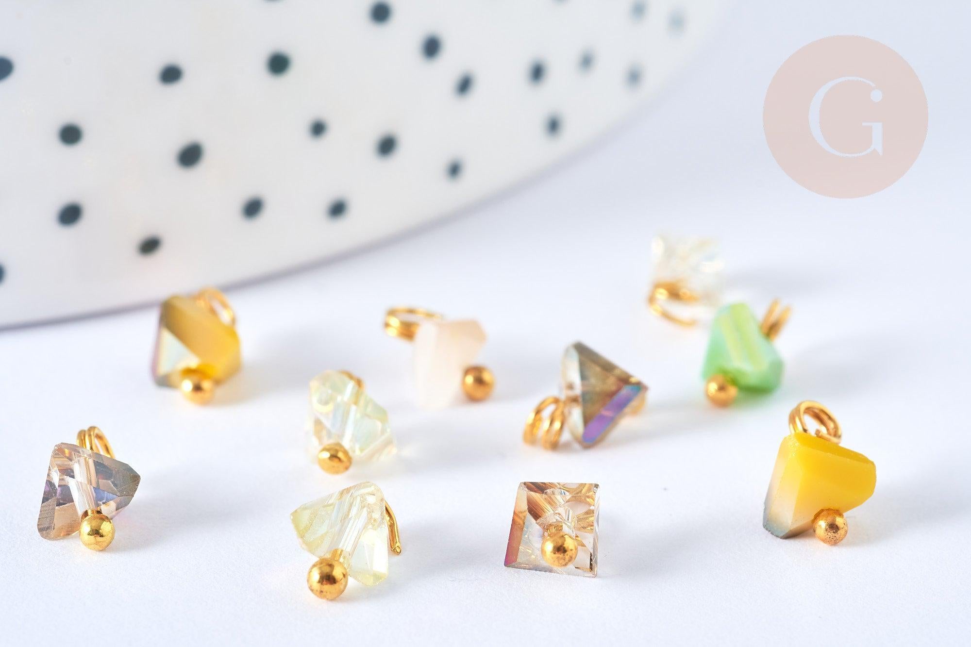 Para joyas coloridas, opte por estos dijes triangulares de vidrio facetado y latón dorado que le permitirán crear numerosas bisutería brillantes y luminosas.