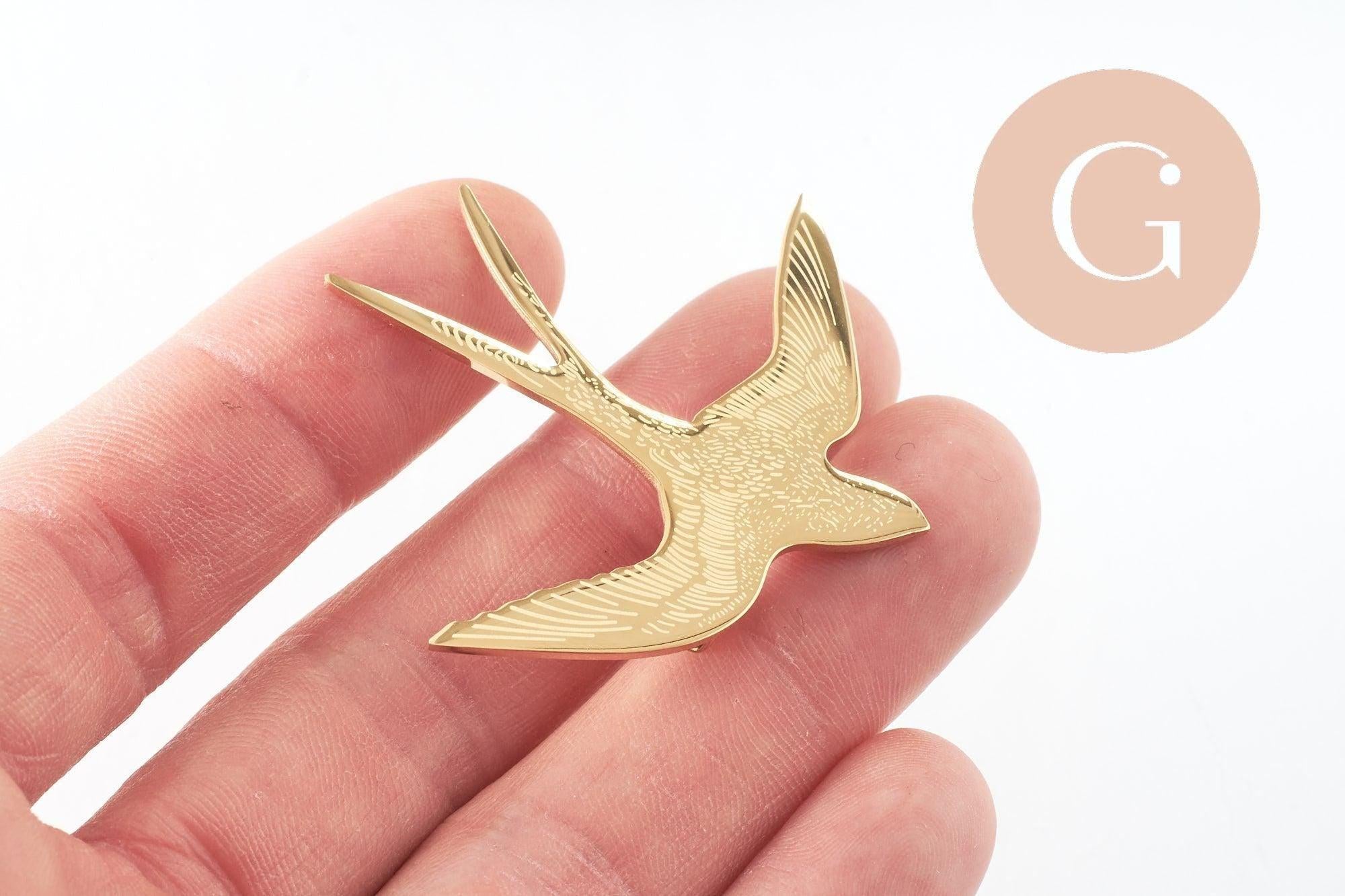 Añade un toque de elegancia a tu atuendo con este broche de golondrina de acero inoxidable 304 en tono dorado de 44 mm.