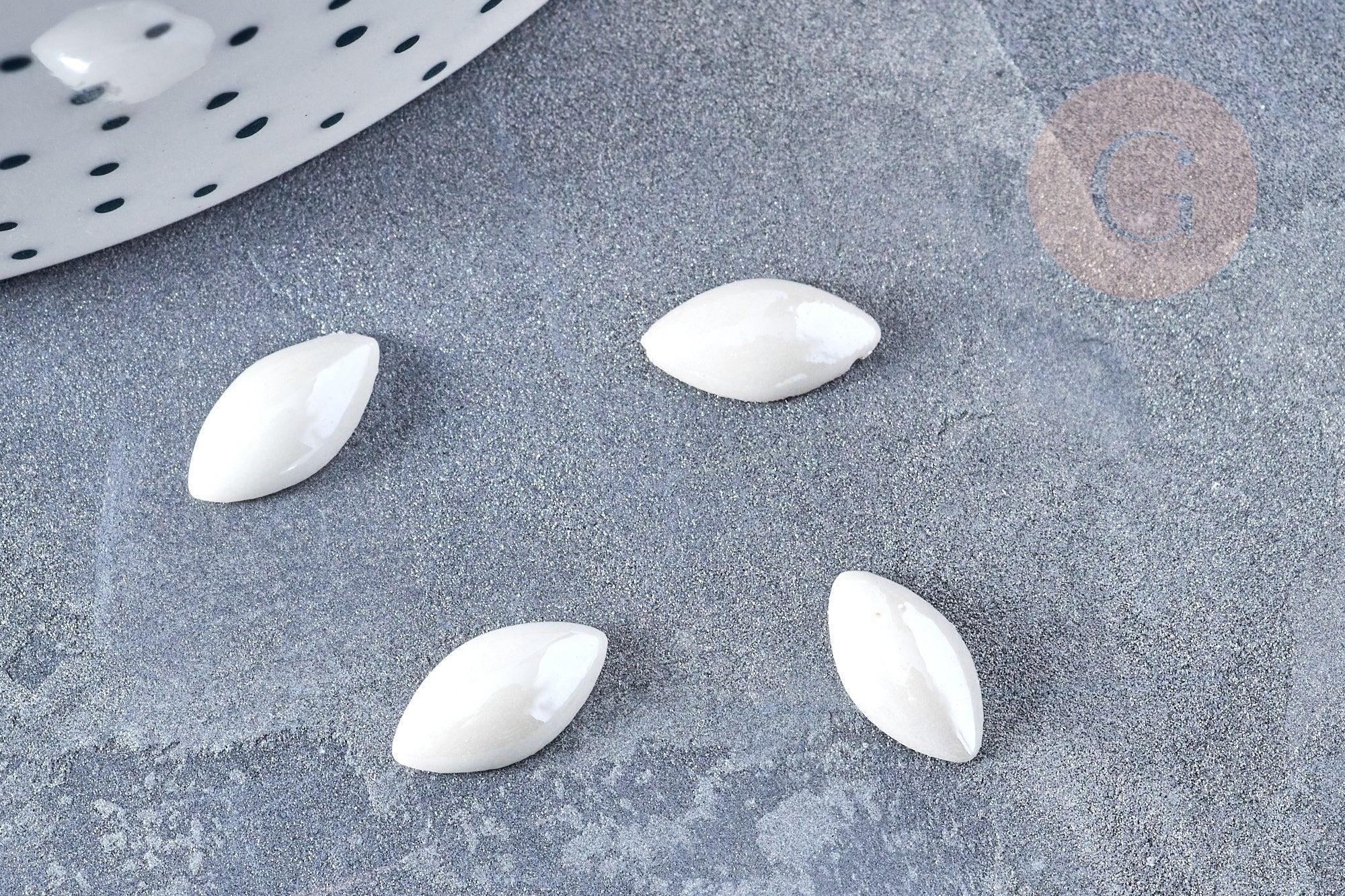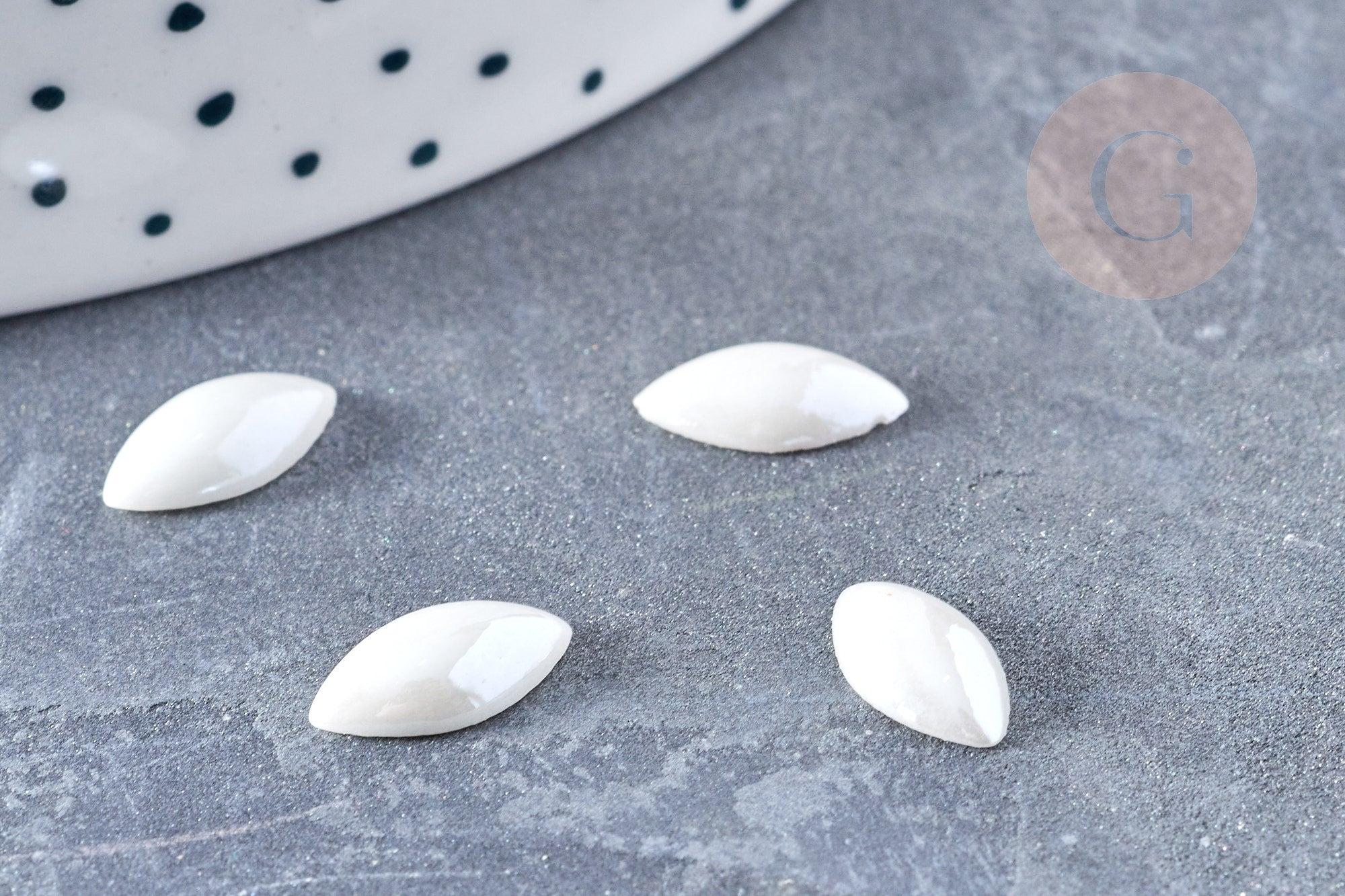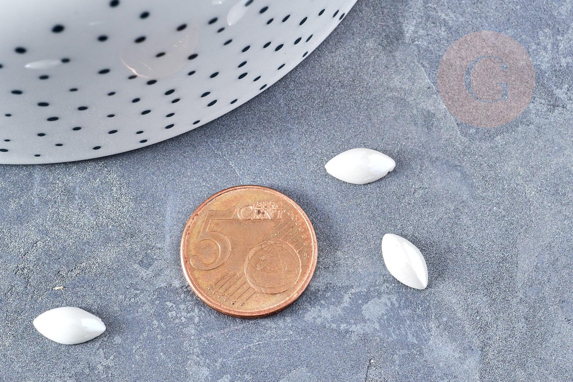 Cabochon ovale verre irisé blanc 6x12mm, x10 (G8706)