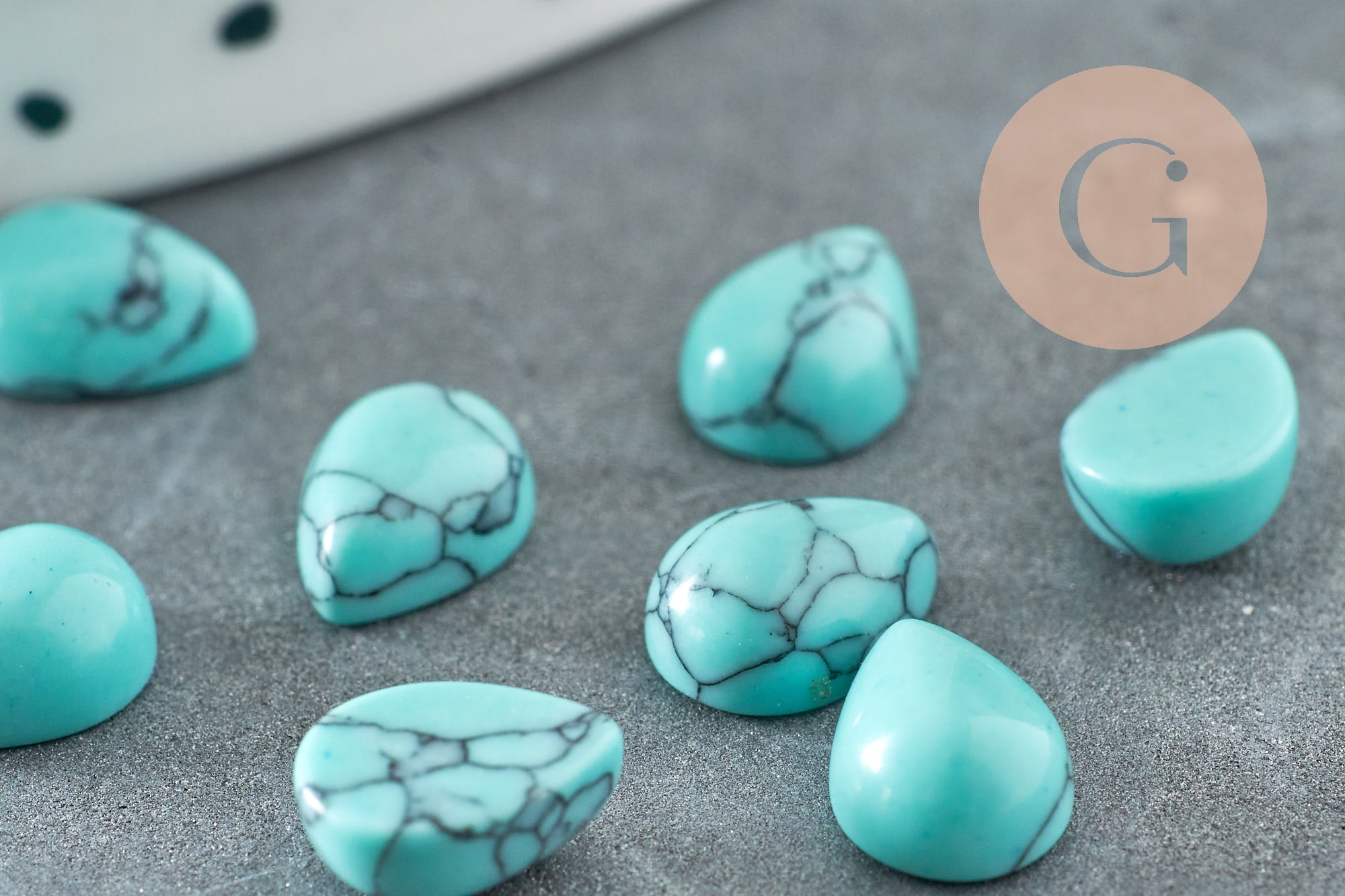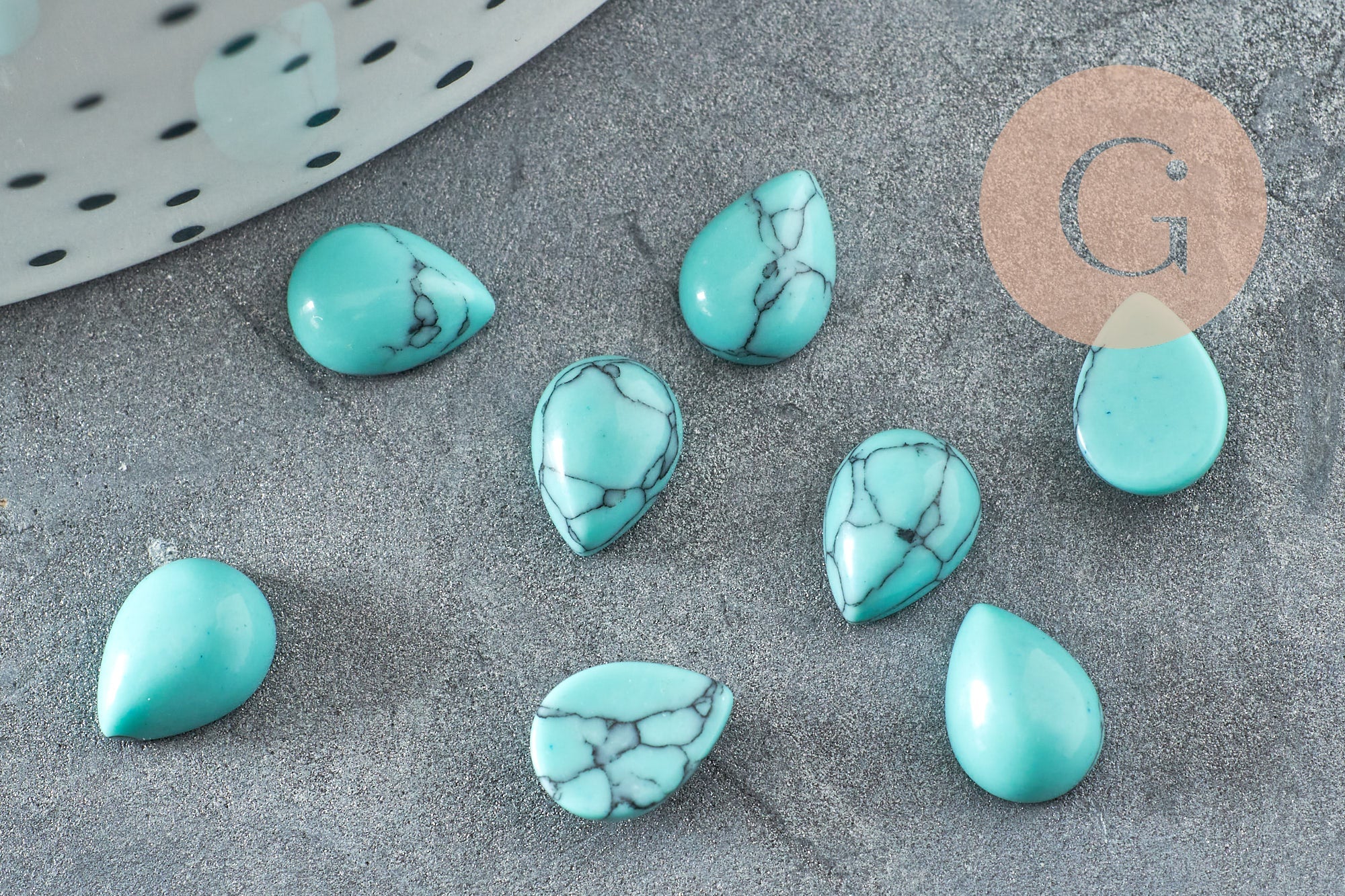 Déjate seducir por este cabujón de turquesa sintética pulida , ideal para crear numerosas piezas de bisutería DIY.