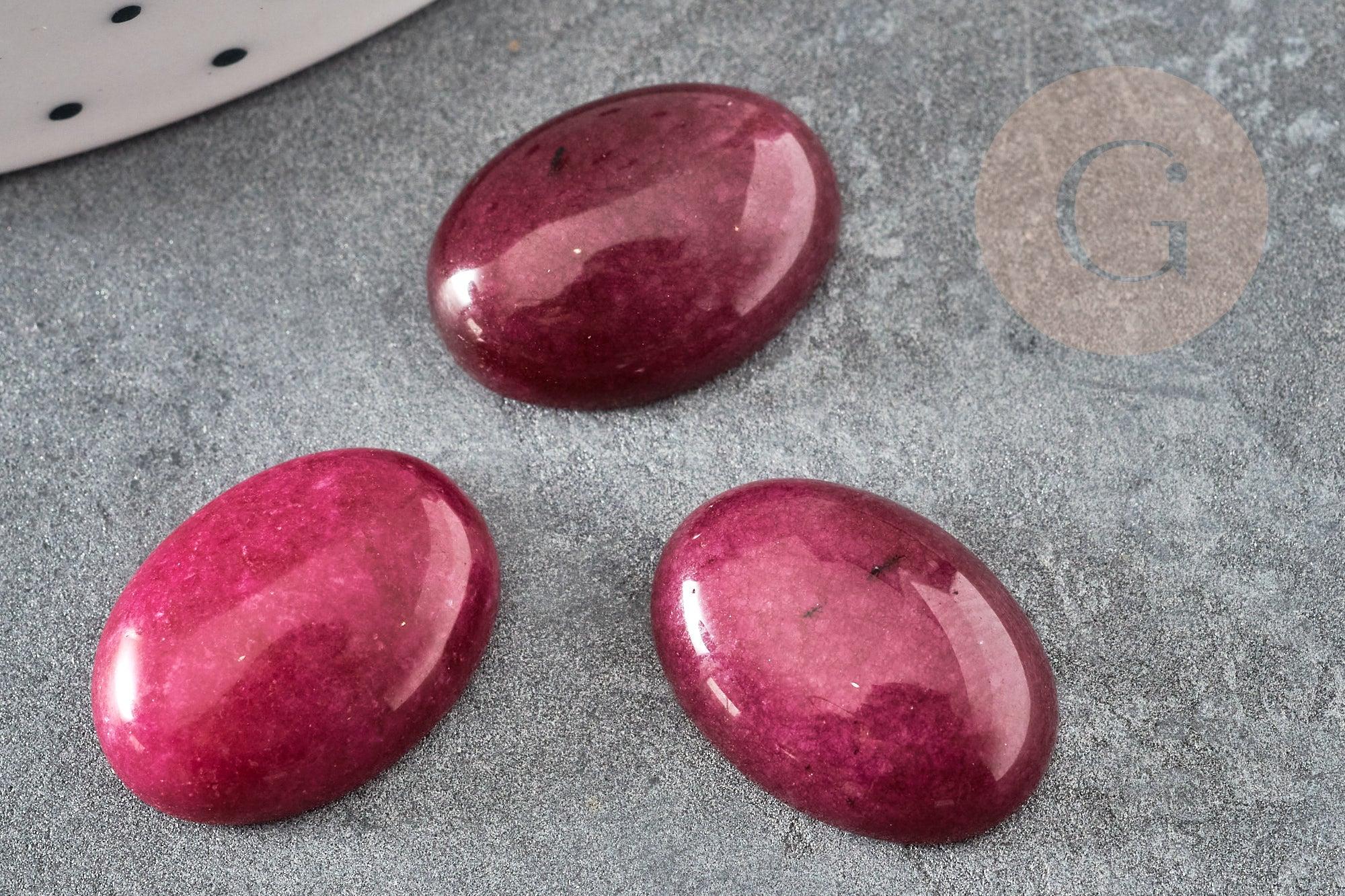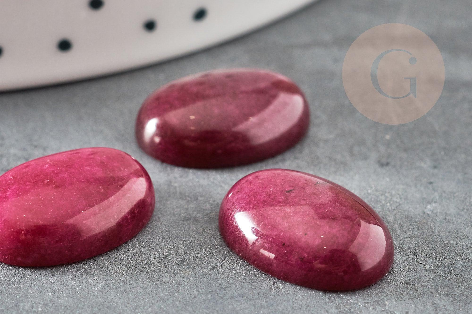 Déjate seducir por este cabujón de jade natural y pulido, teñido de burdeos.