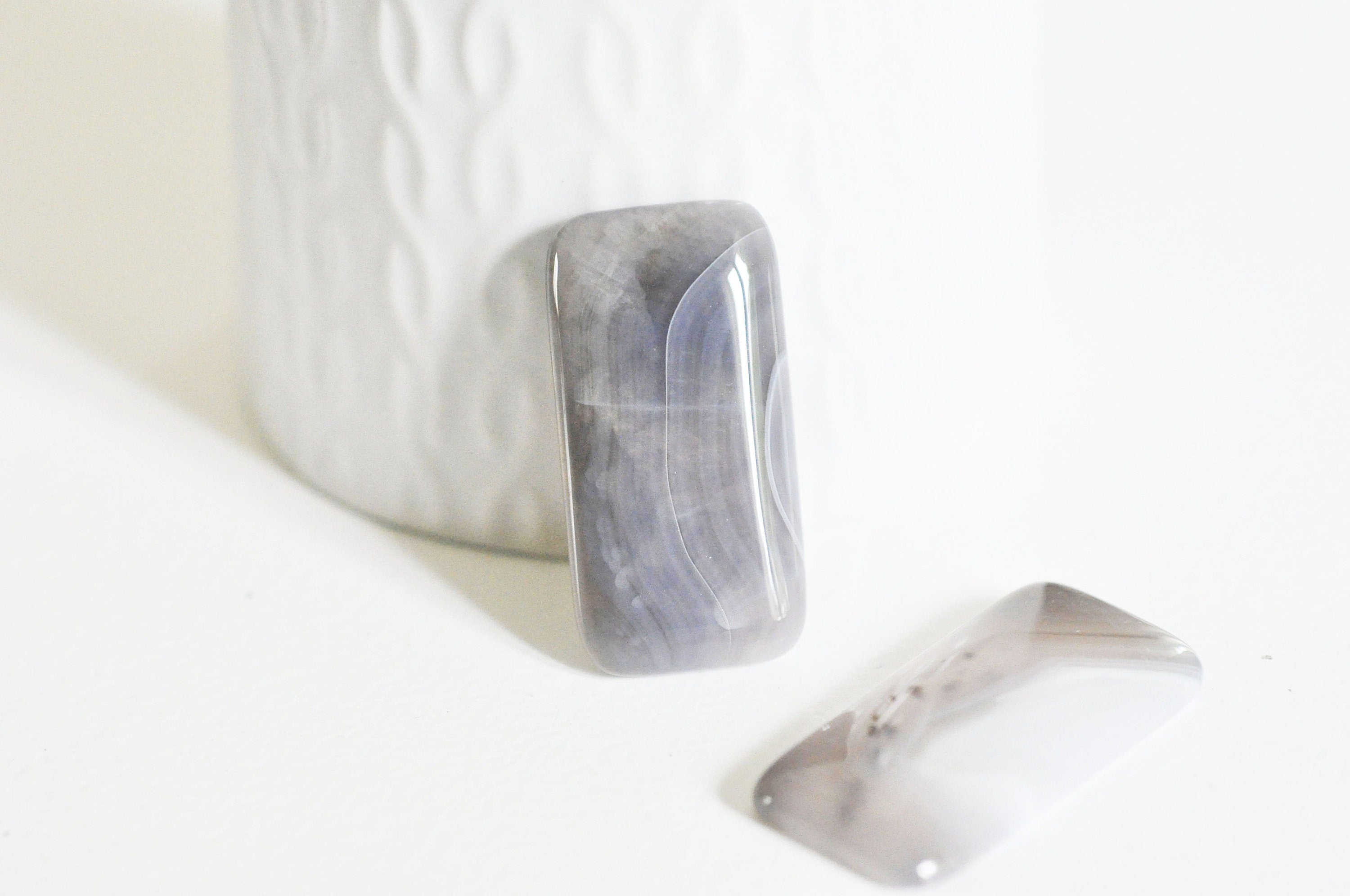Déjese seducir por este cabujón rectangular de ágata gris rayada natural pulida. Ágata sin teñir Puedes colocarlo en tus anillos, pendientes y collares, así como en pulseras y puños, creando tu propio entorno o pegándolo sobre un soporte adecuado. Dimensiones...
